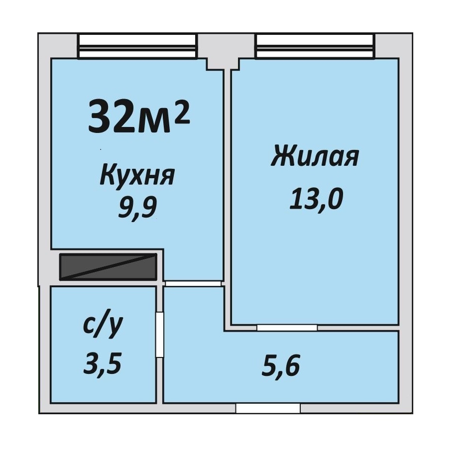 Однокомнатная , №32 , 32 м2