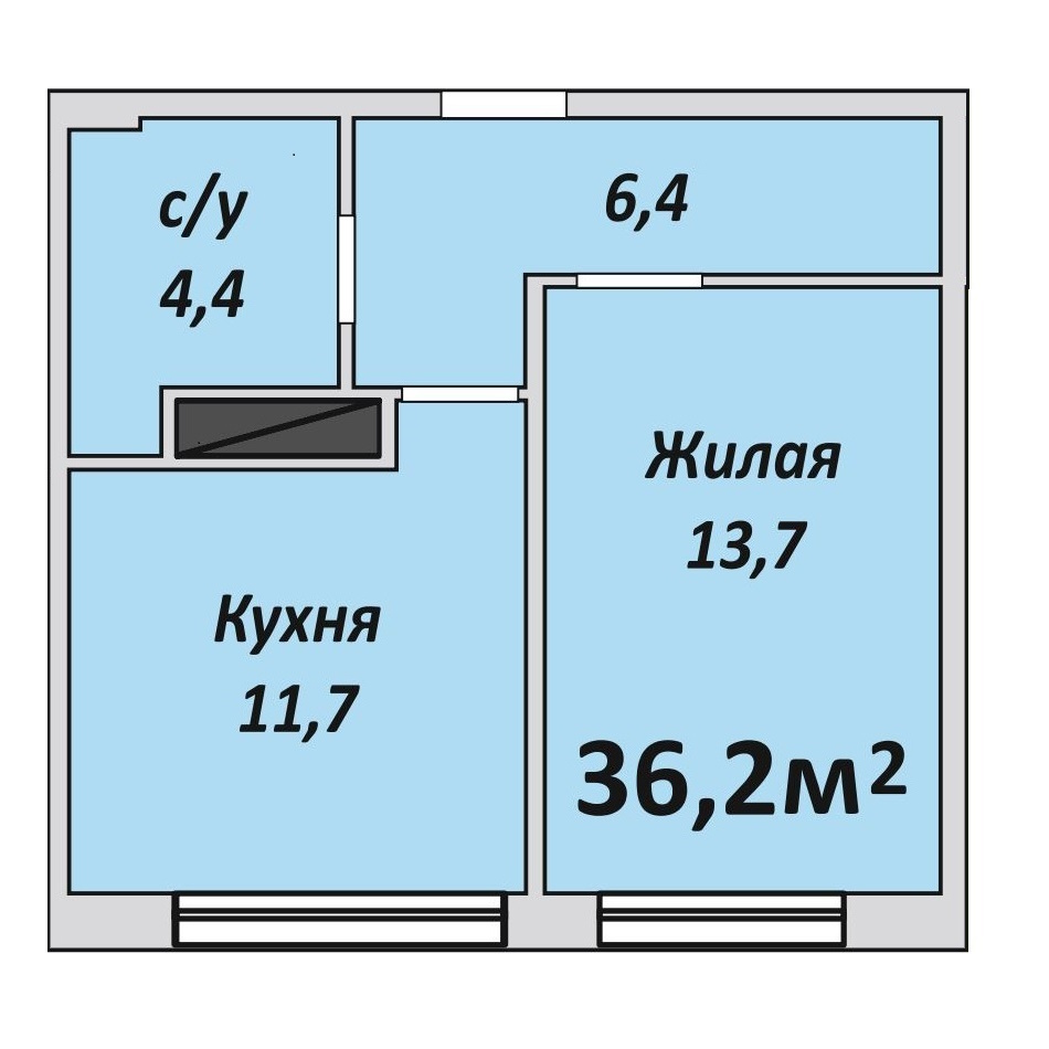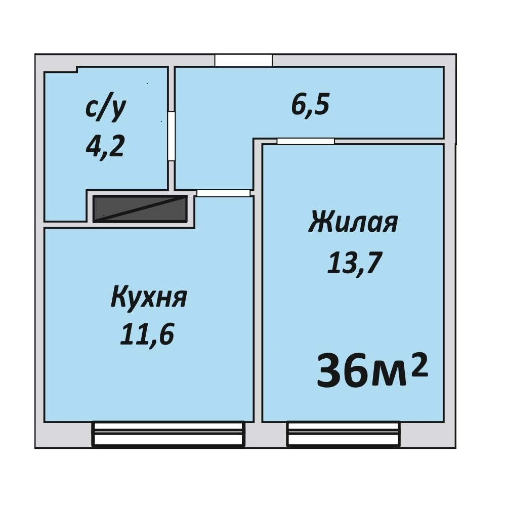 Однокомнатная , №1 , 36.6 м2