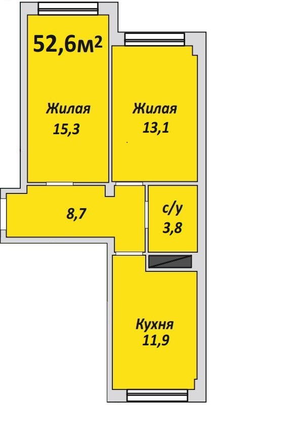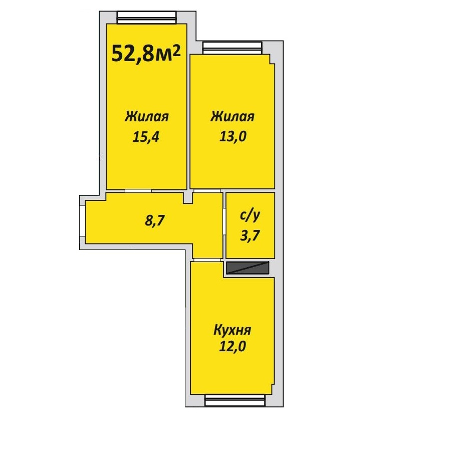 Двухкомнатная , №15 , 52.8 м2