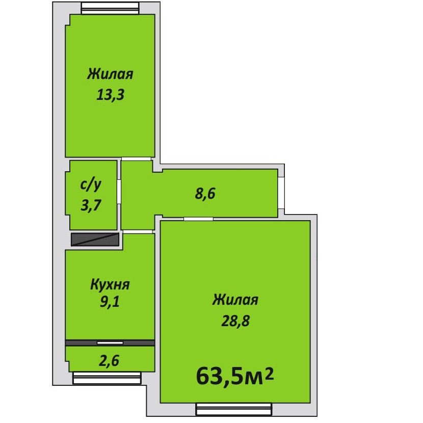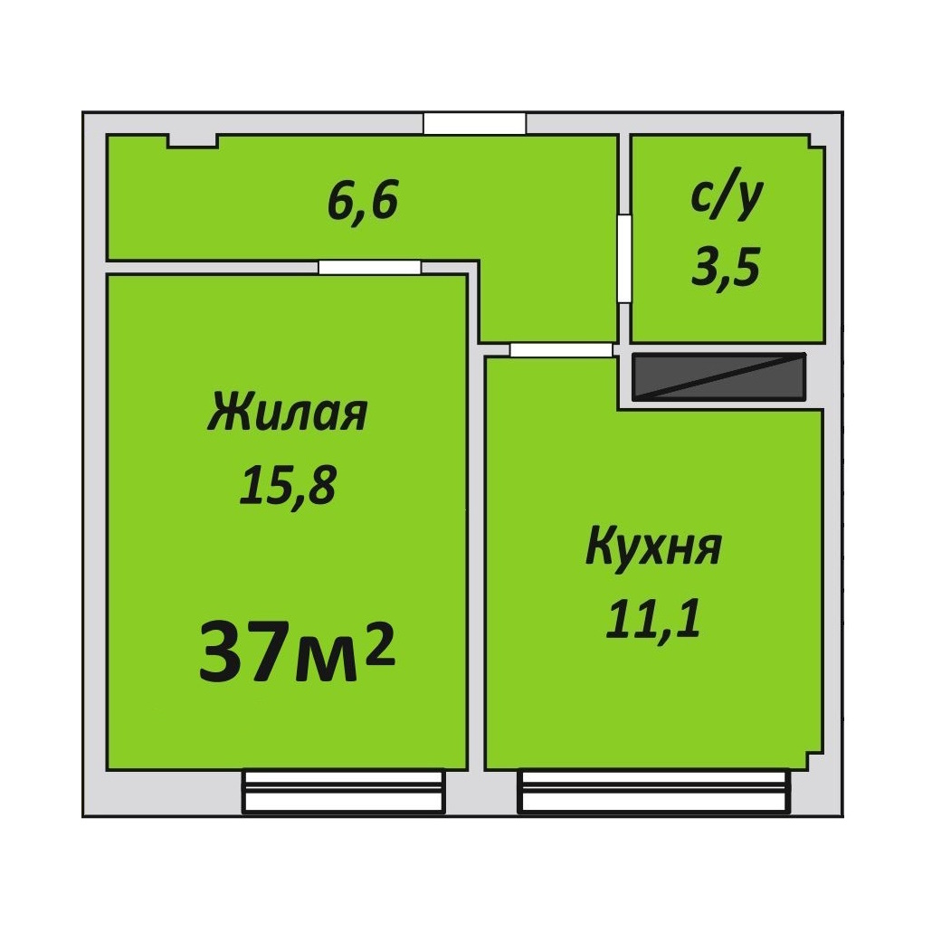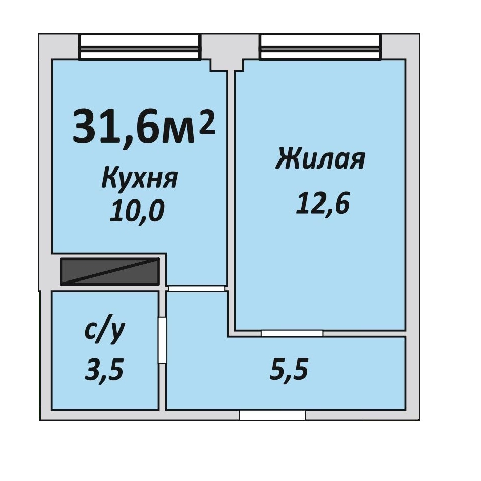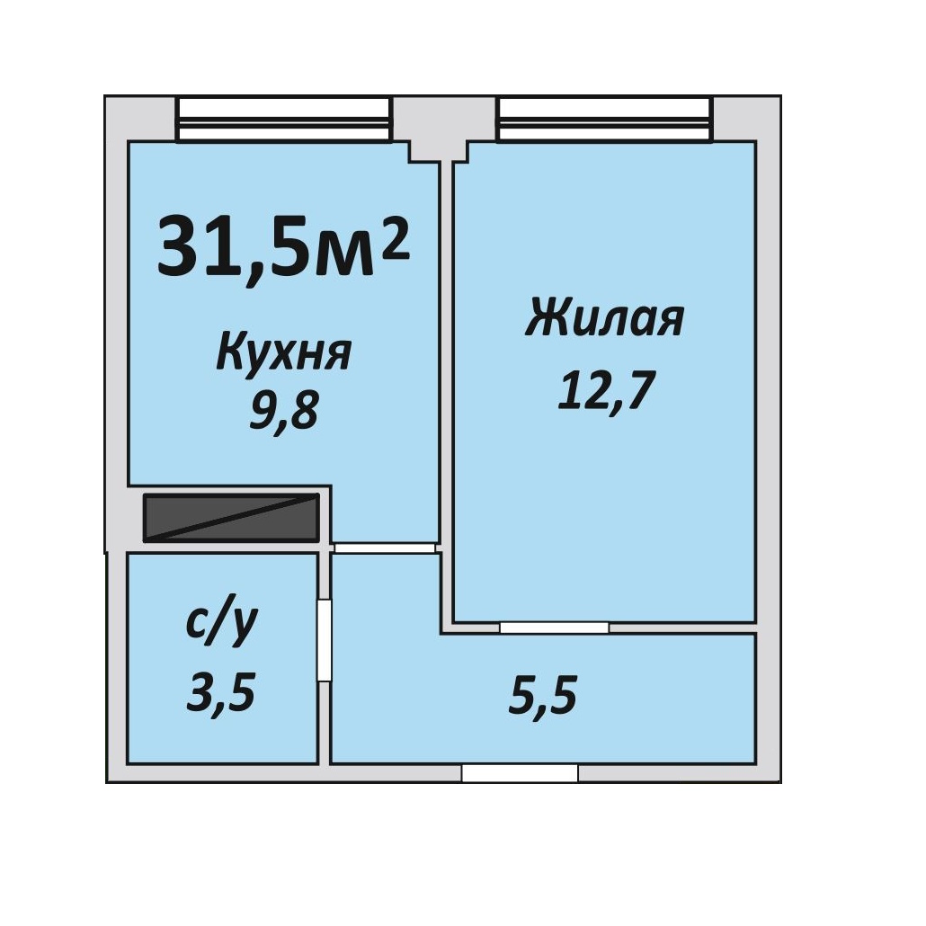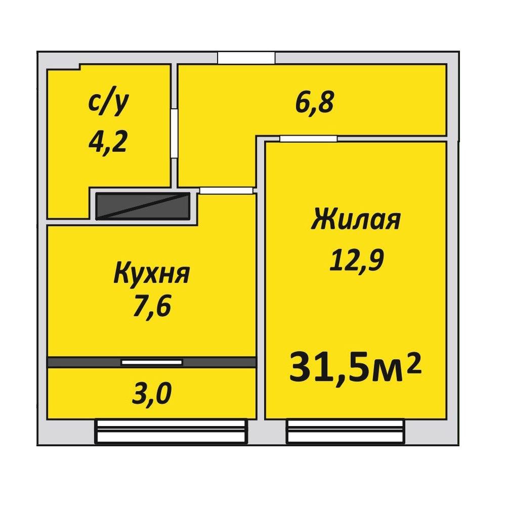 Однокомнатная , №6 , 31.5 м2
