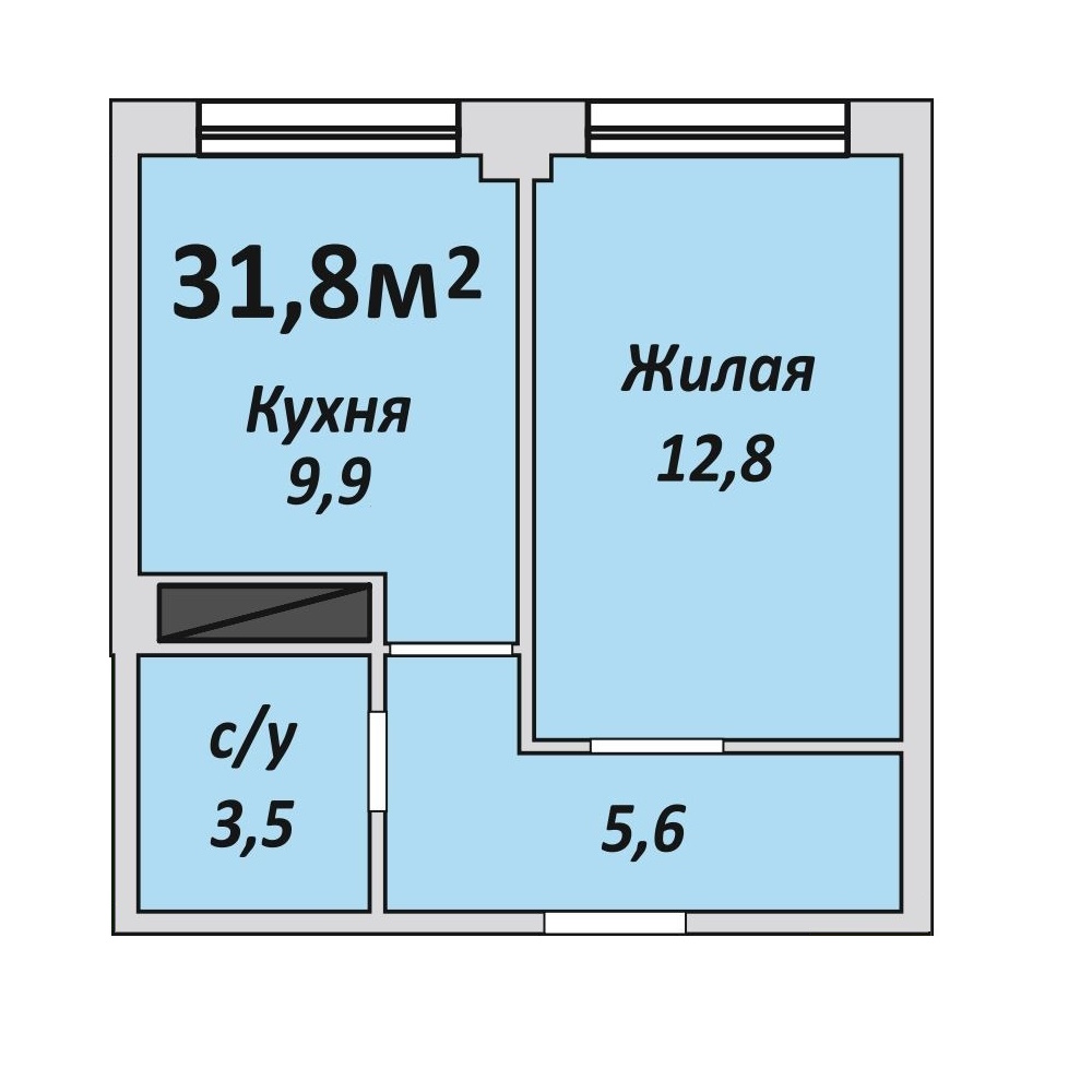 Однокомнатная , №14 , 31.8 м2
