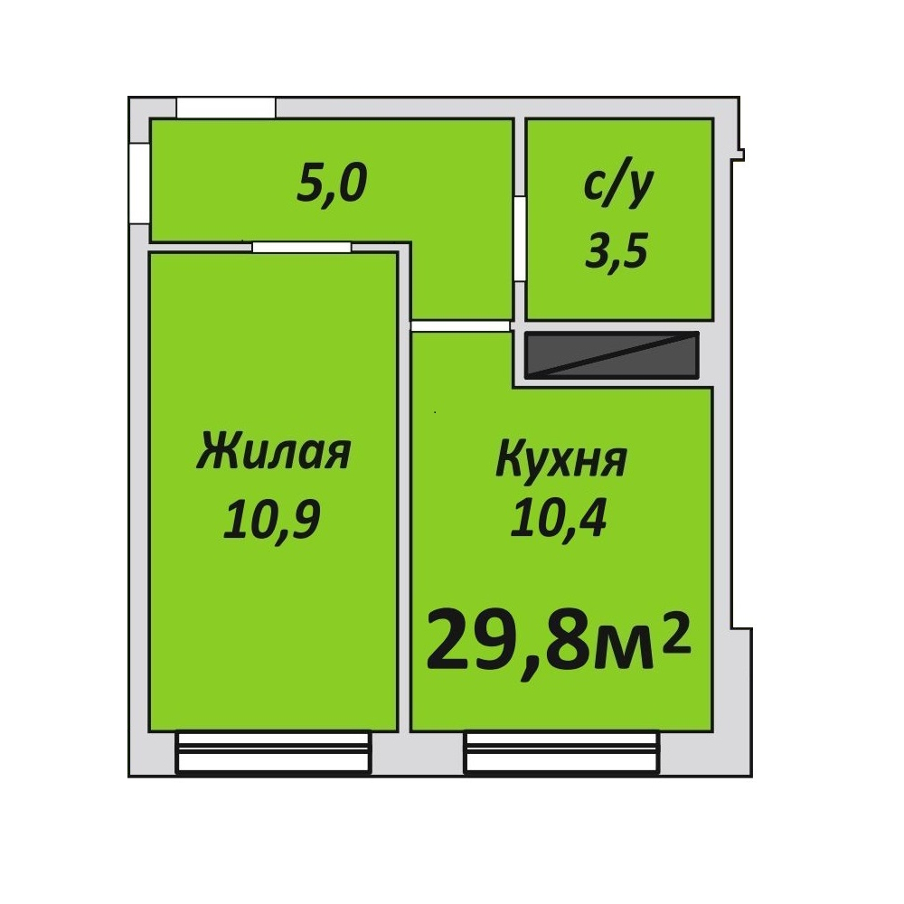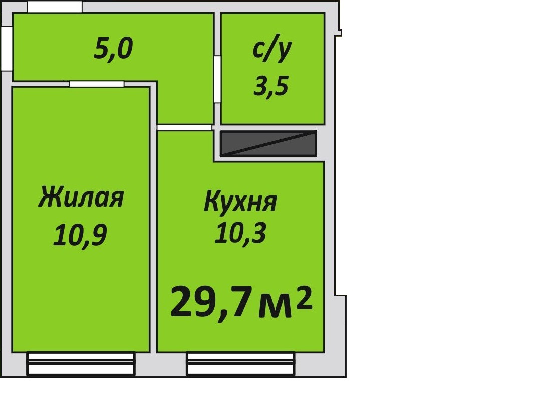 Однокомнатная , №35 , 29.7 м2