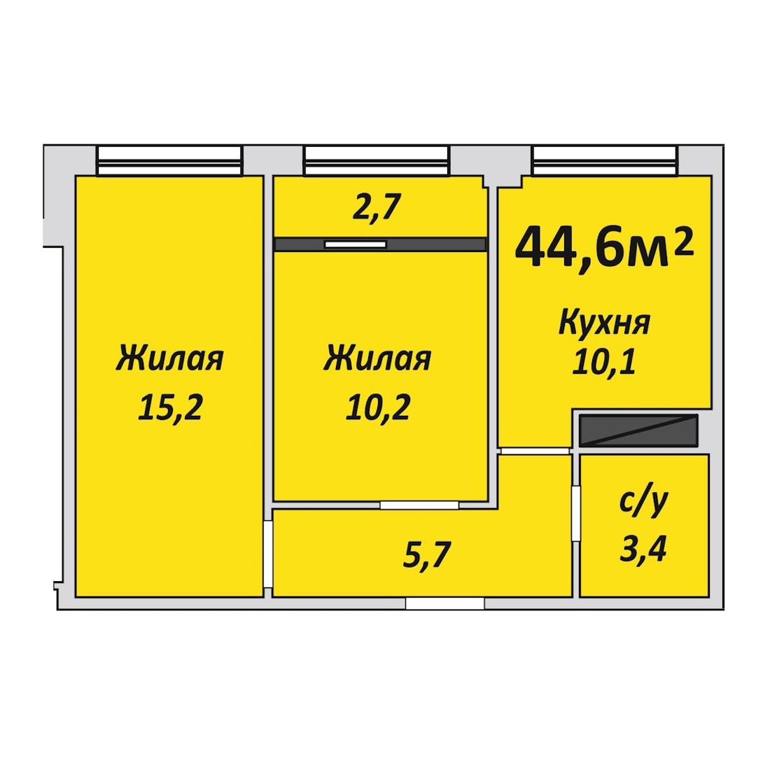 Двухкомнатная , №38 , 44.6 м2