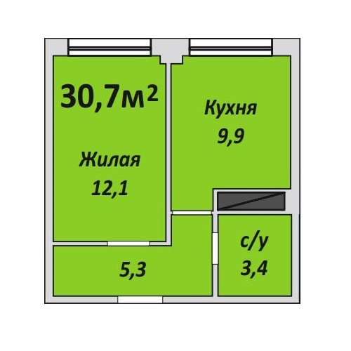 Однокомнатная , №12 , 30.9 м2