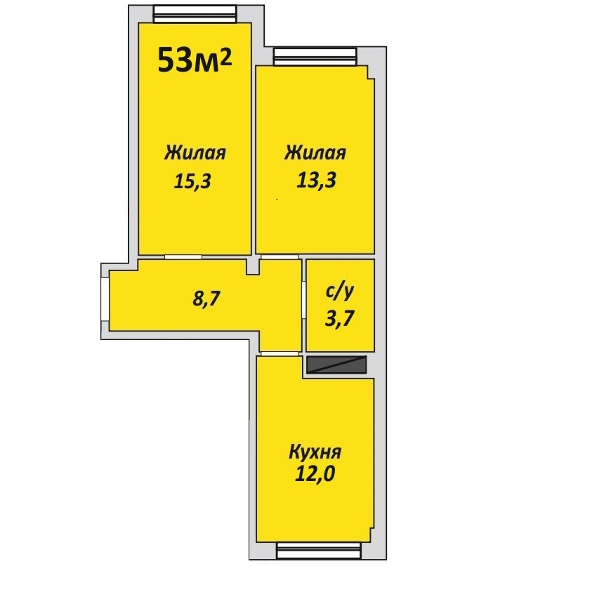 Двухкомнатная , №33 , 52.8 м2
