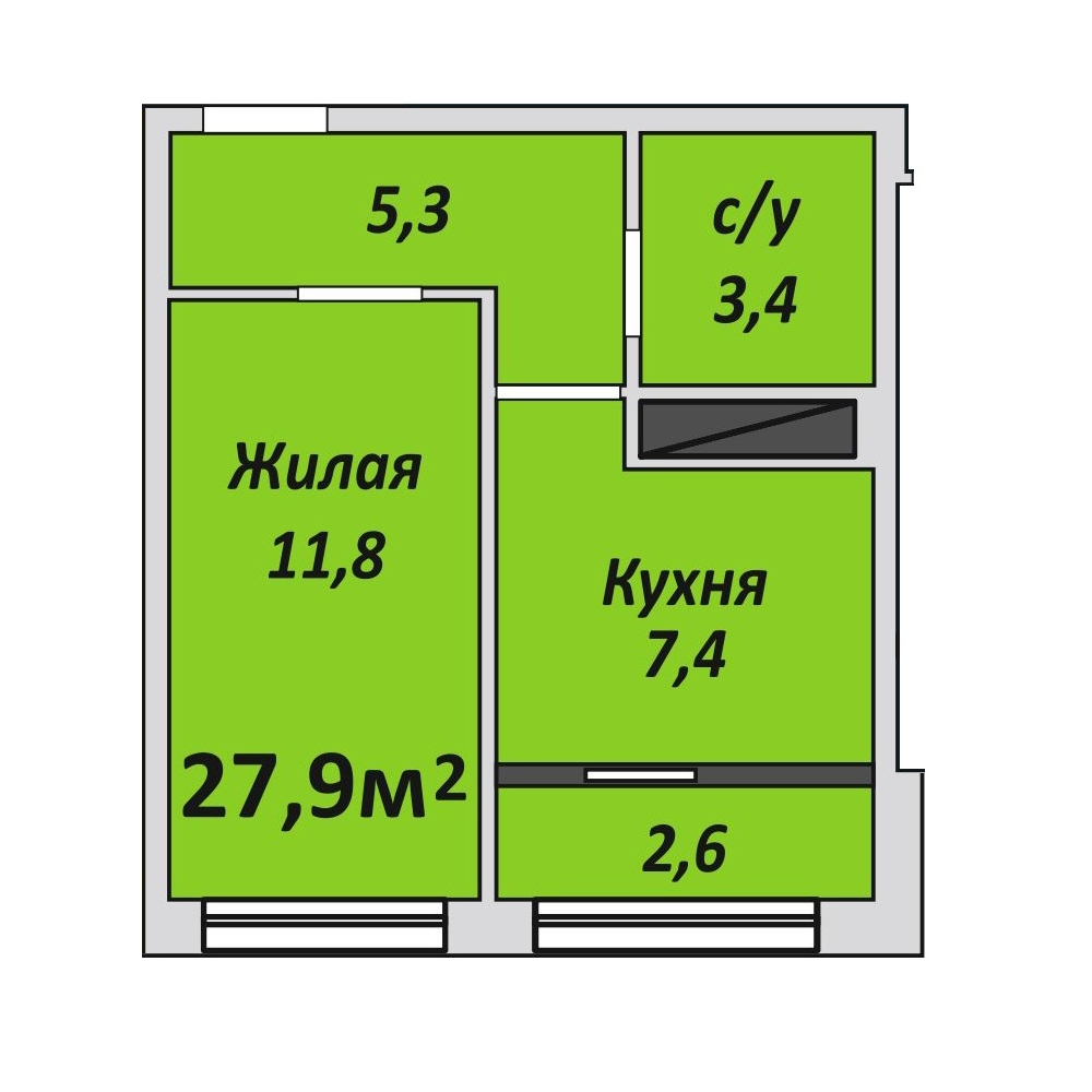 Однокомнатная , №43 , 27.9 м2