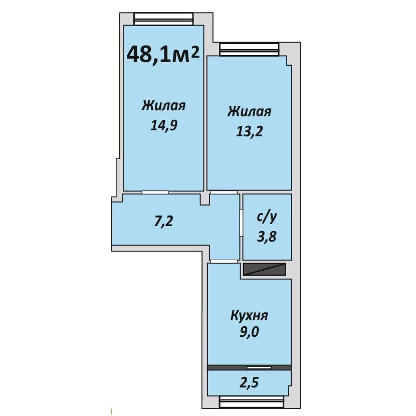Однокомнатная , №8 , 48.1 м2