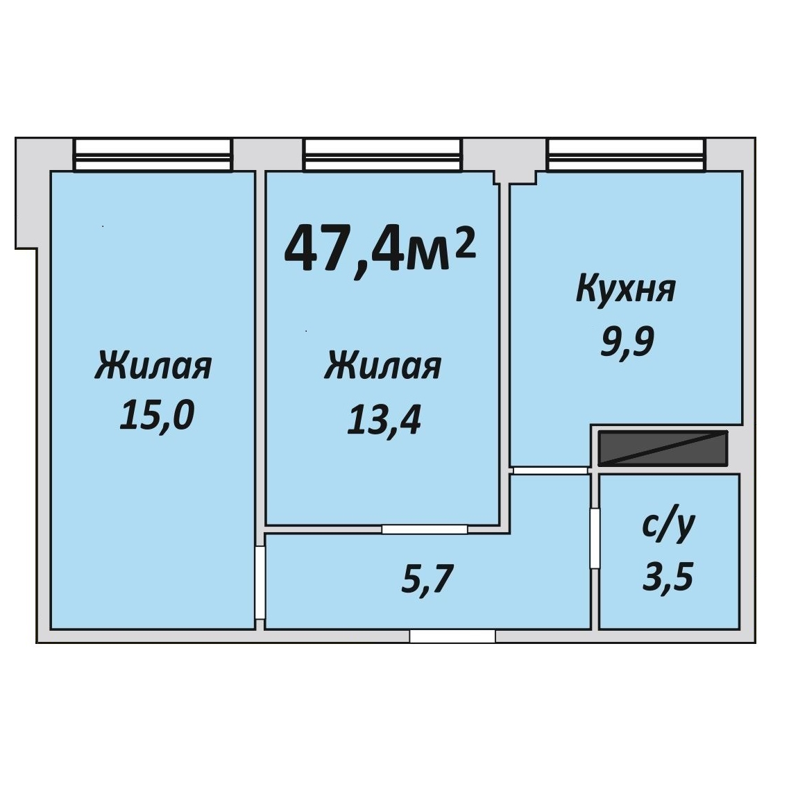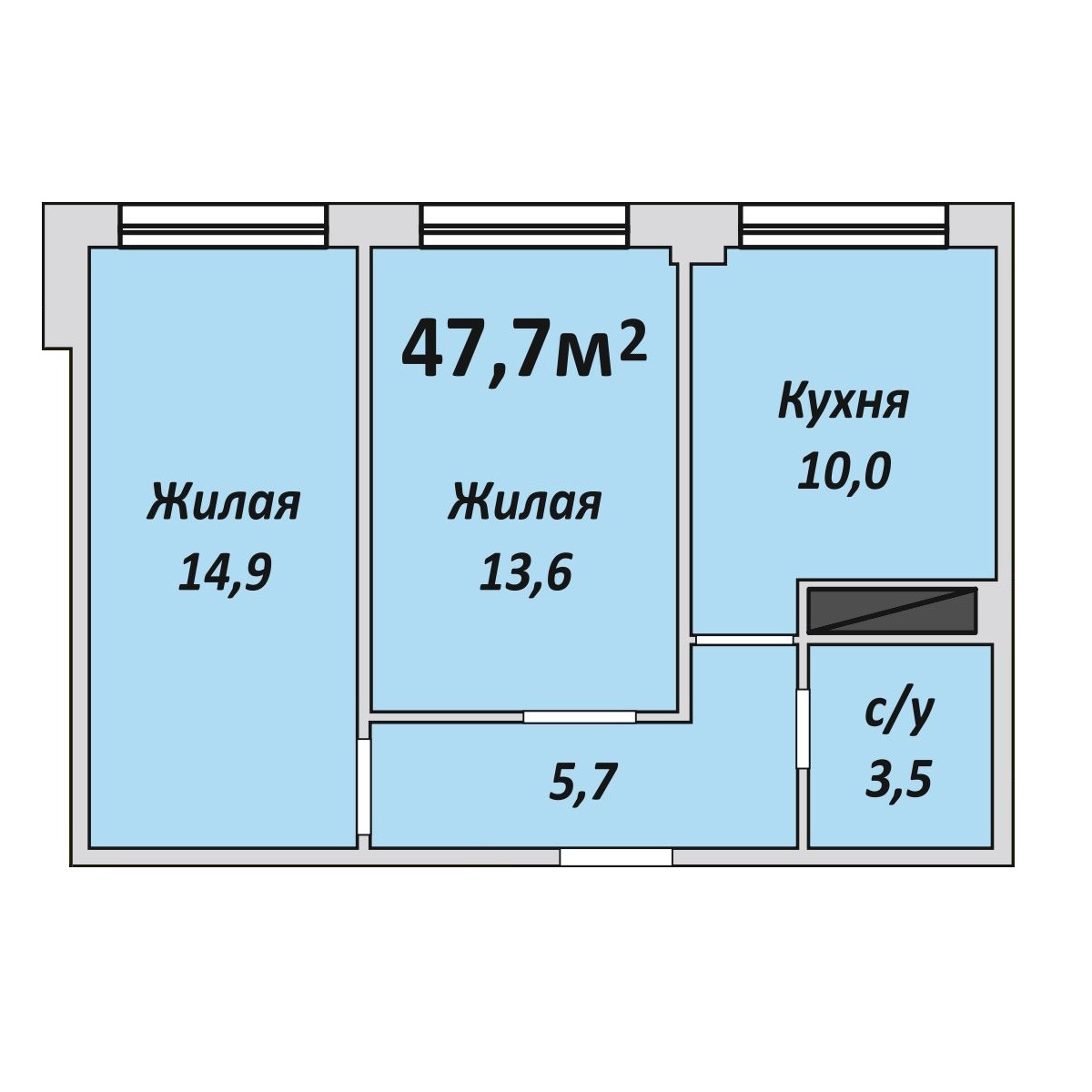 Двухкомнатная , №3 , 47.7 м2