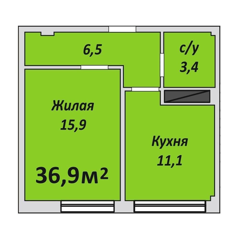 Однокомнатная , №9 , 36.9 м2