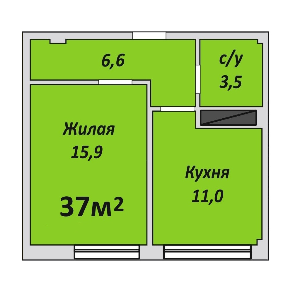 Однокомнатная , №27 , 37 м2