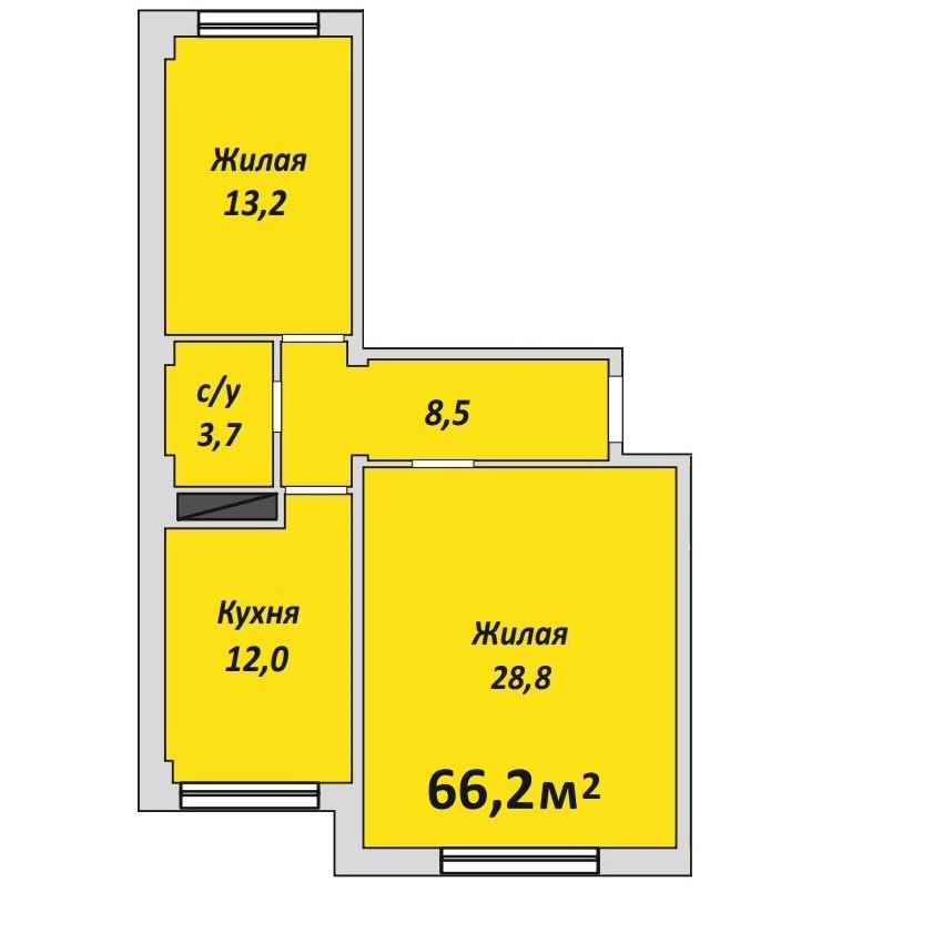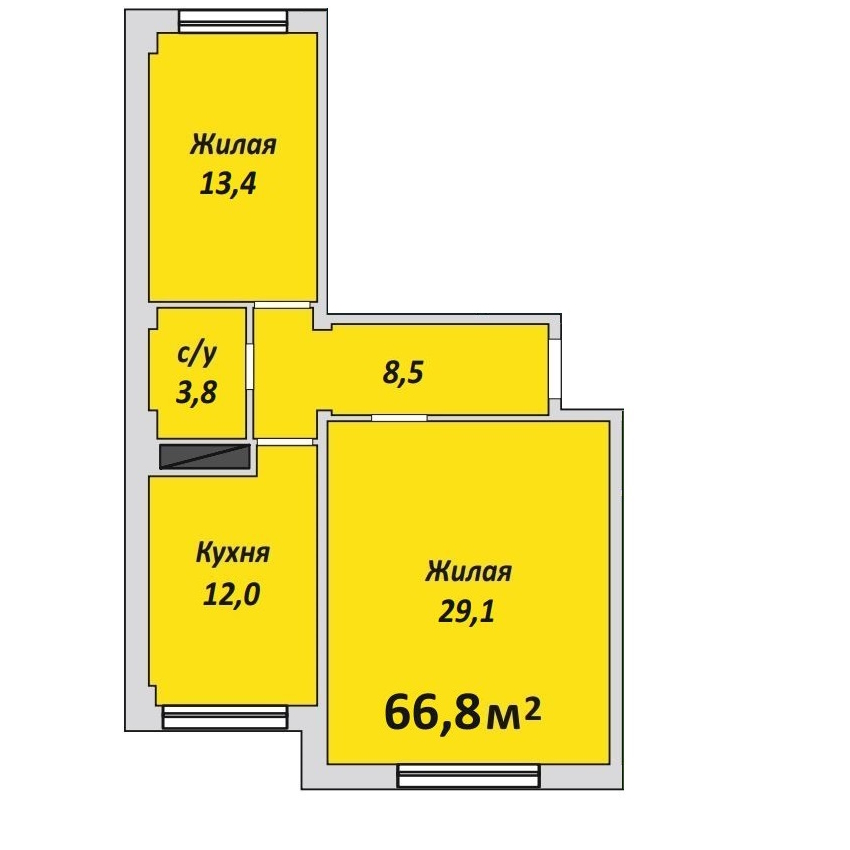 Двухкомнатная , №28 , 66.8 м2