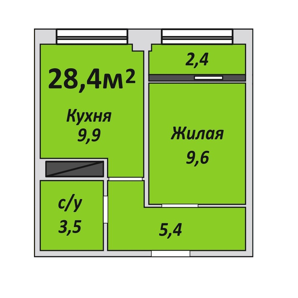 Однокомнатная , №39 , 28.4 м2
