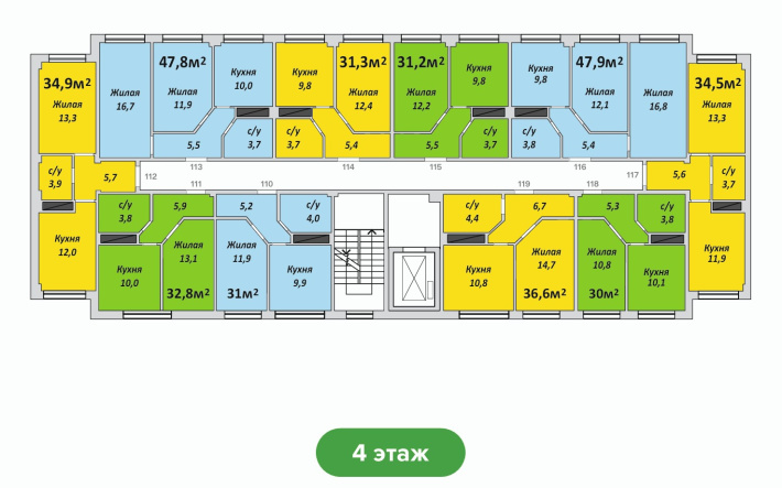 Однокомнатная, №112 , 34.9 м2