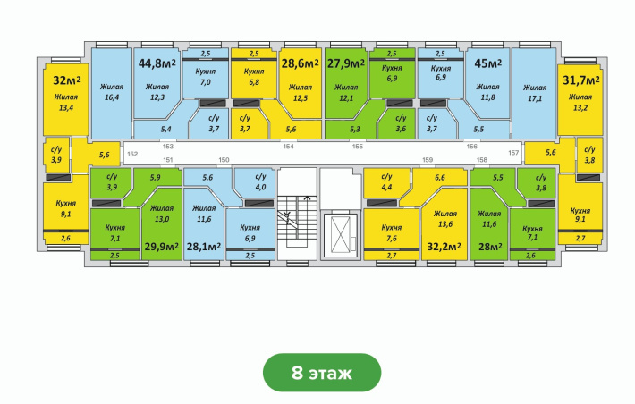 ЖК «Европейский», Дом 7, Подъезд 2 (прямая секция)