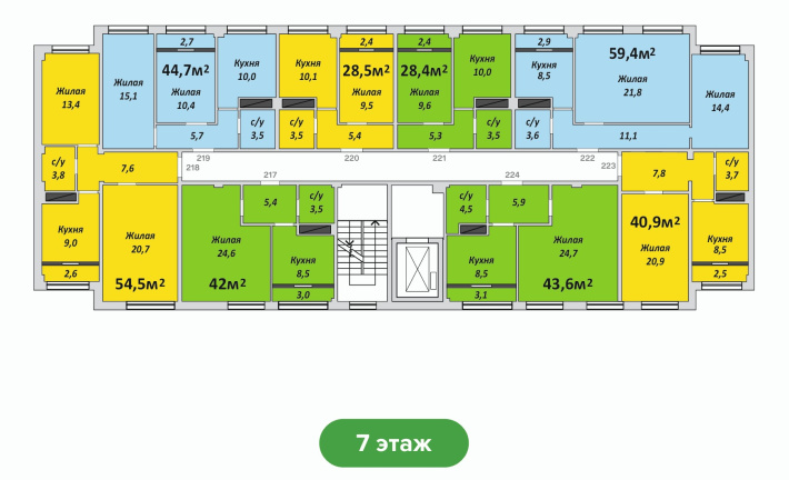Двухкомнатная, №222 , 59.4 м2