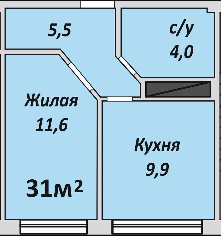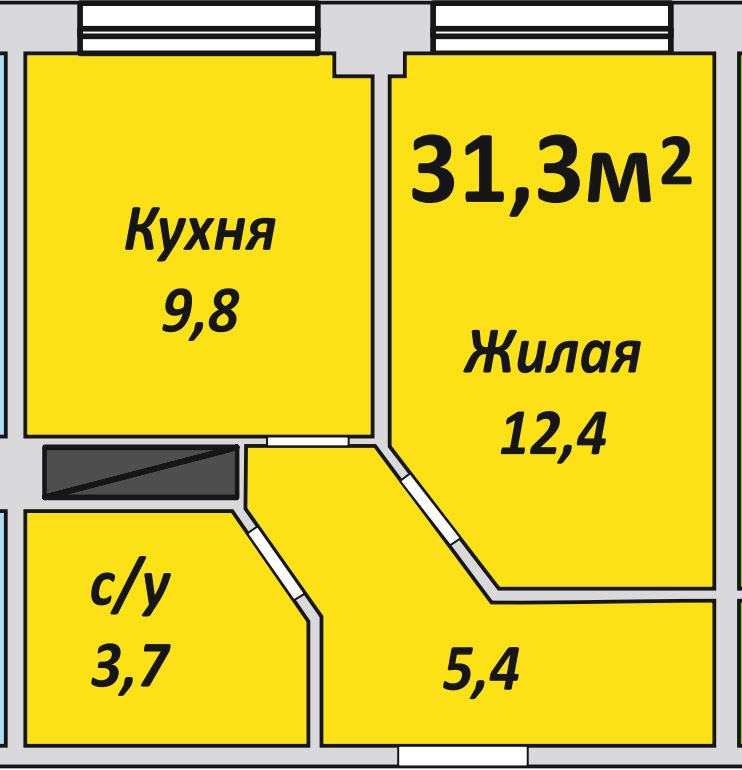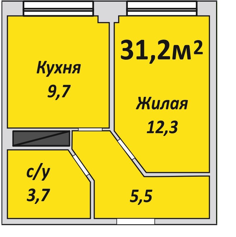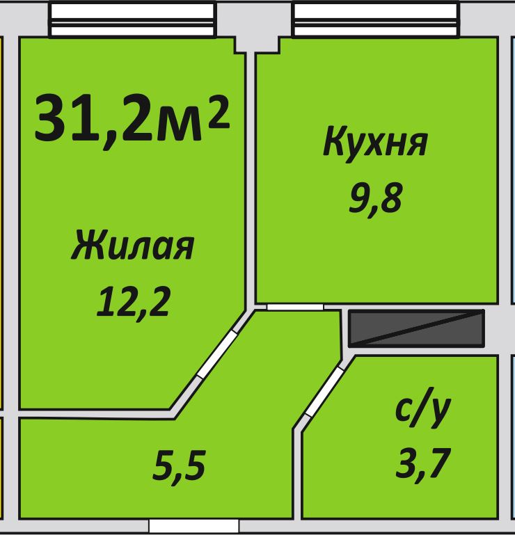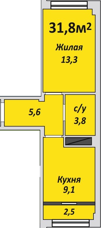 Однокомнатная , №115 , 31.2 м2