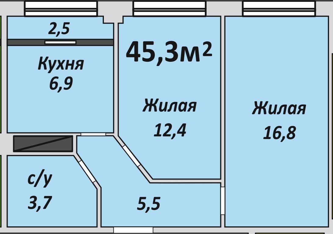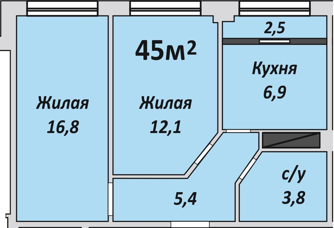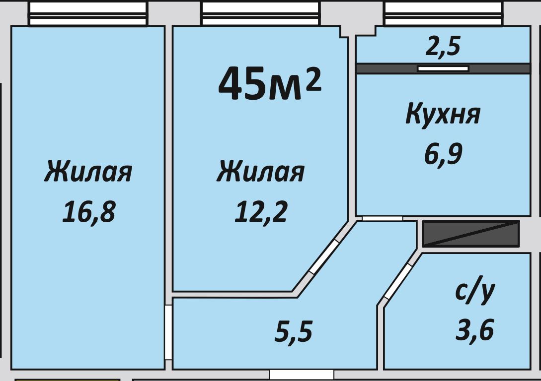 Двухкомнатная , №143 , 45 м2