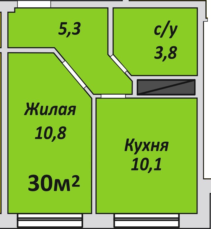 Однокомнатная , №118 , 30 м2