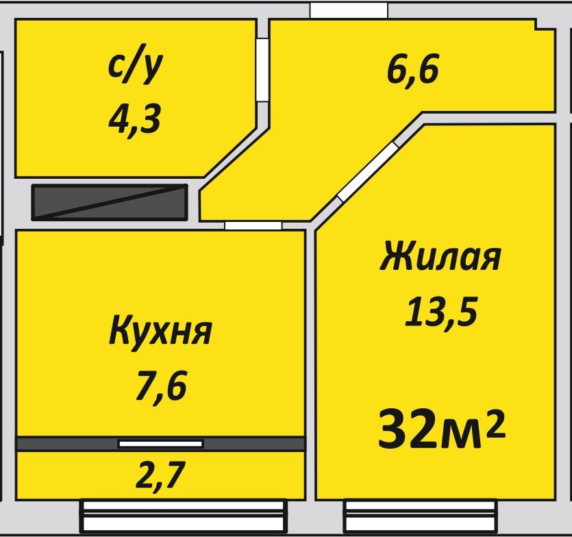 Однокомнатная , №152 , 32 м2