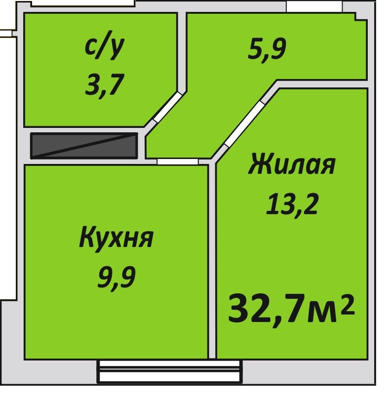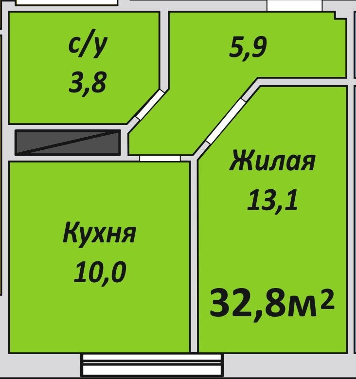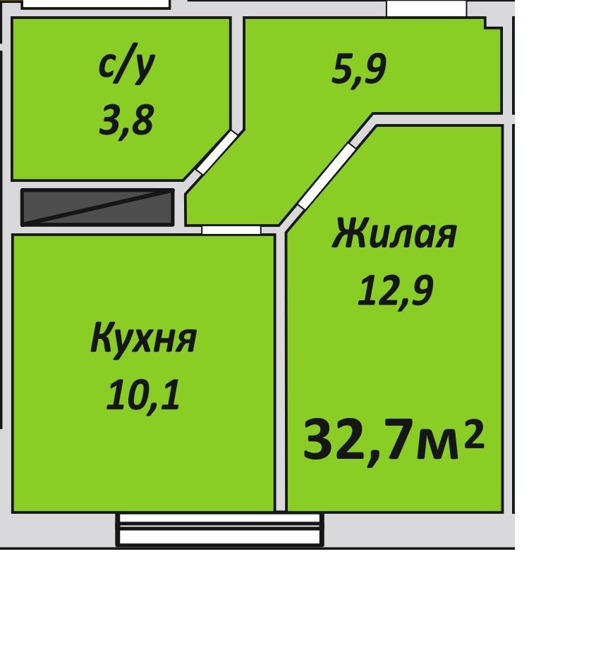 Однокомнатная , №101 , 32.7 м2
