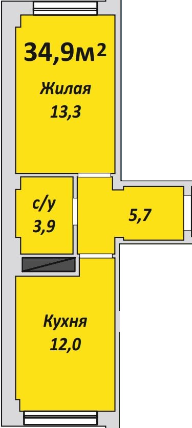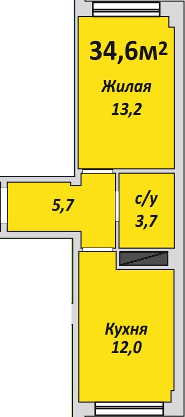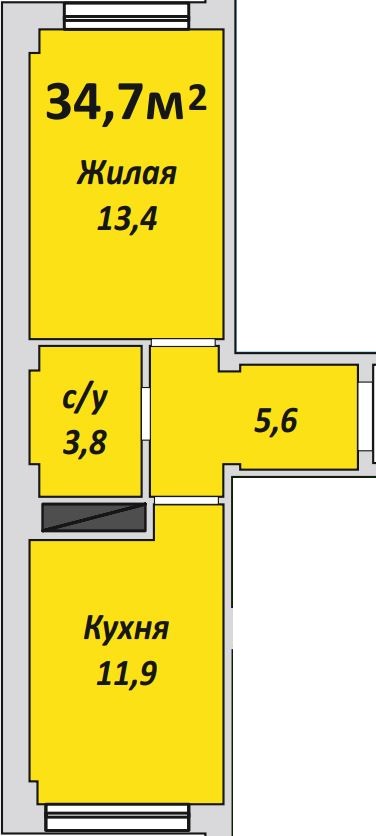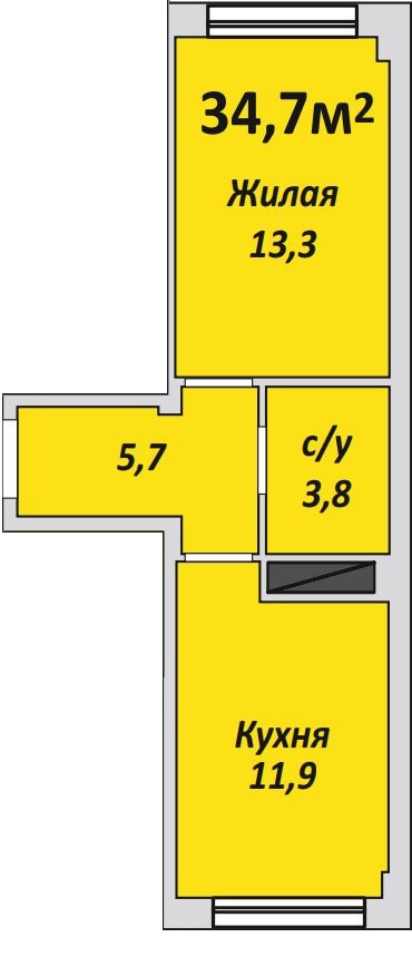 Однокомнатная , №97 , 34.7 м2