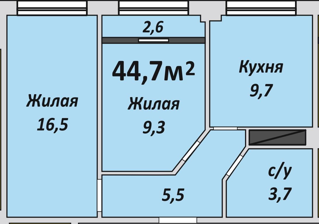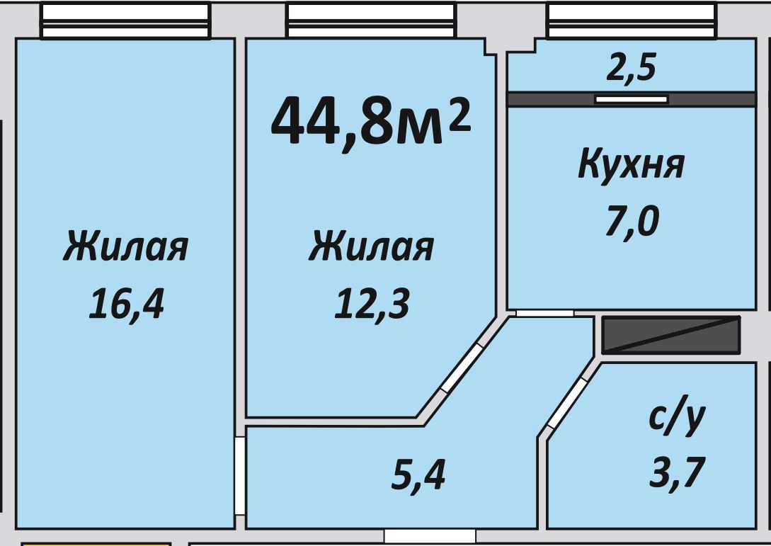 Двухкомнатная , №163 , 44.7 м2
