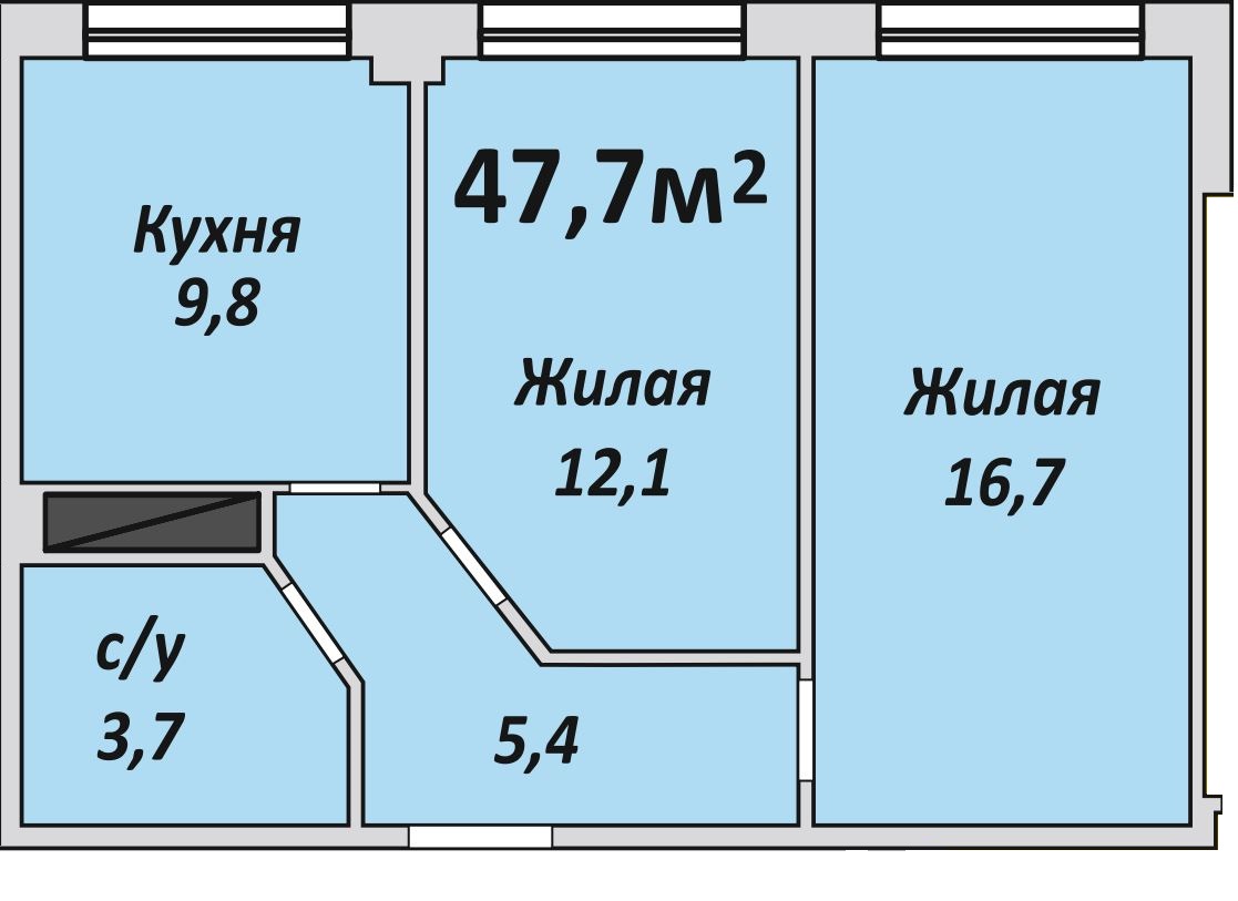 Двухкомнатная , №96 , 47.7 м2