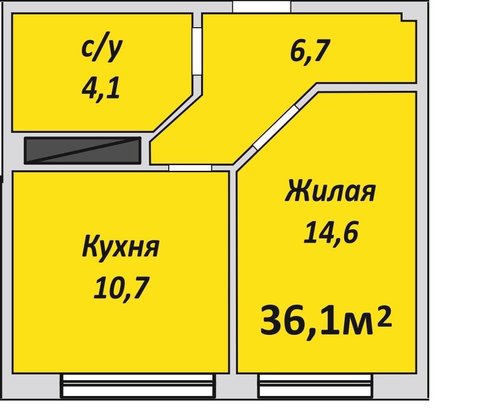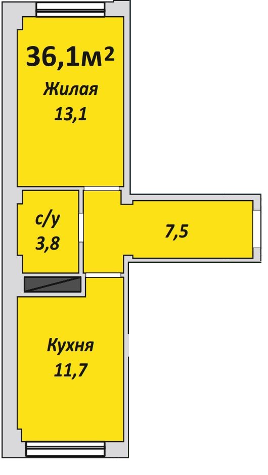 Однокомнатная , №99 , 36.1 м2