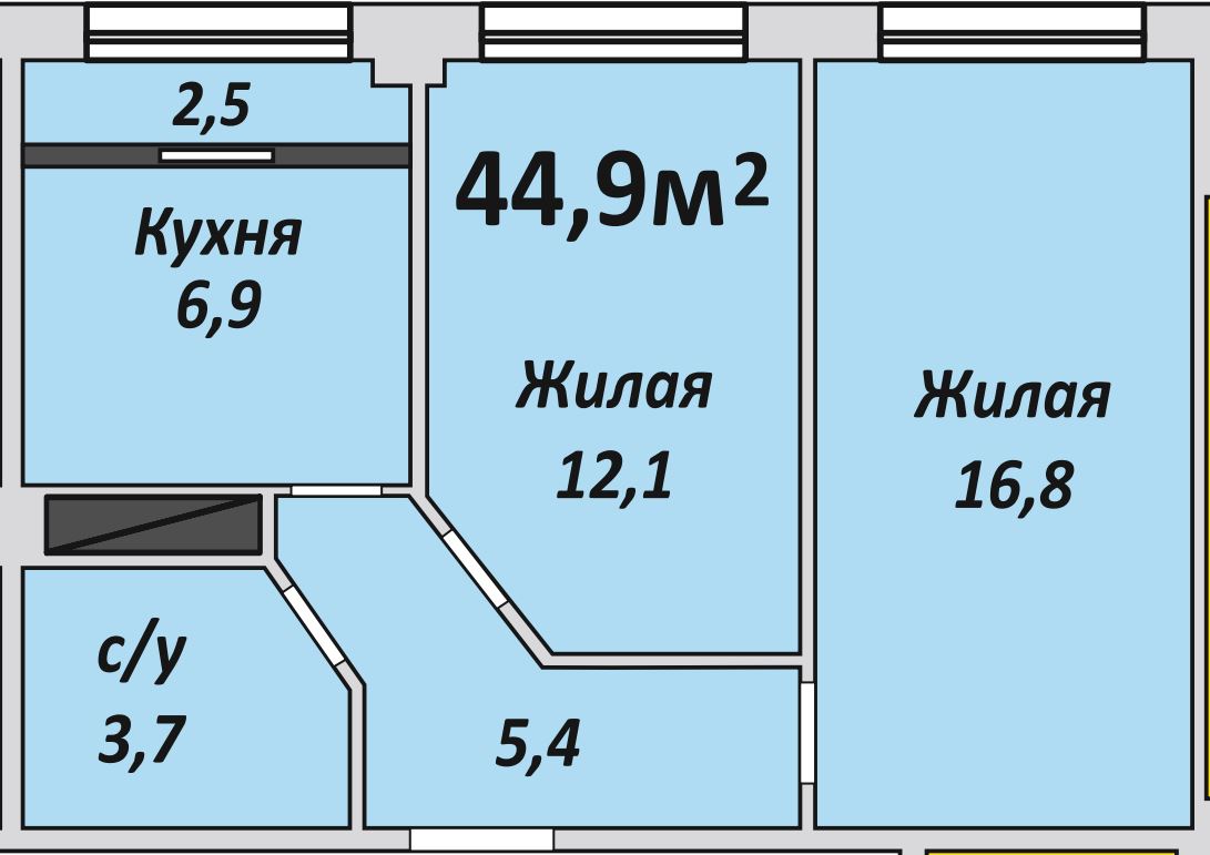 Двухкомнатная , №123 , 44.9 м2
