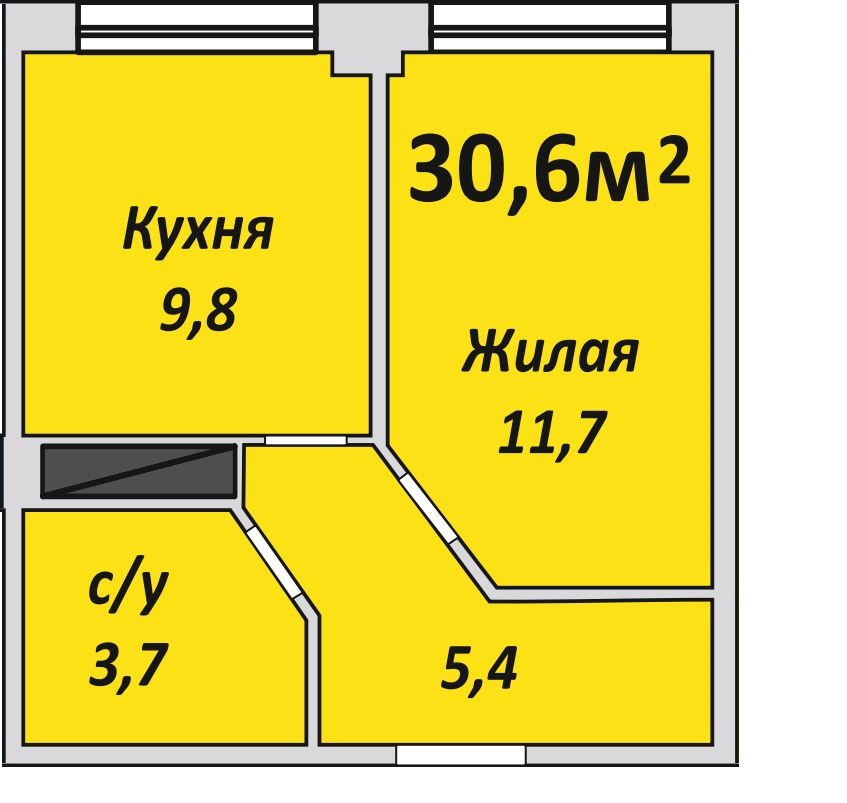Однокомнатная , №94 , 30.6 м2