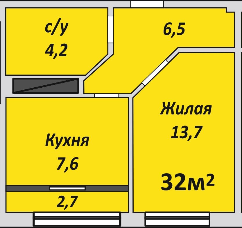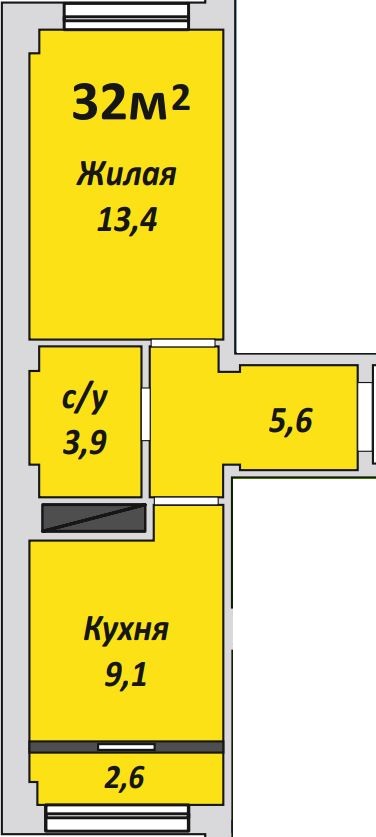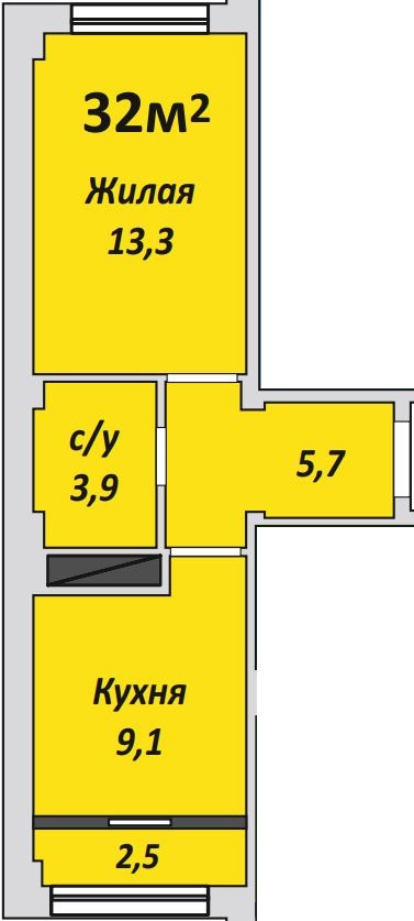 Однокомнатная , №139 , 32 м2
