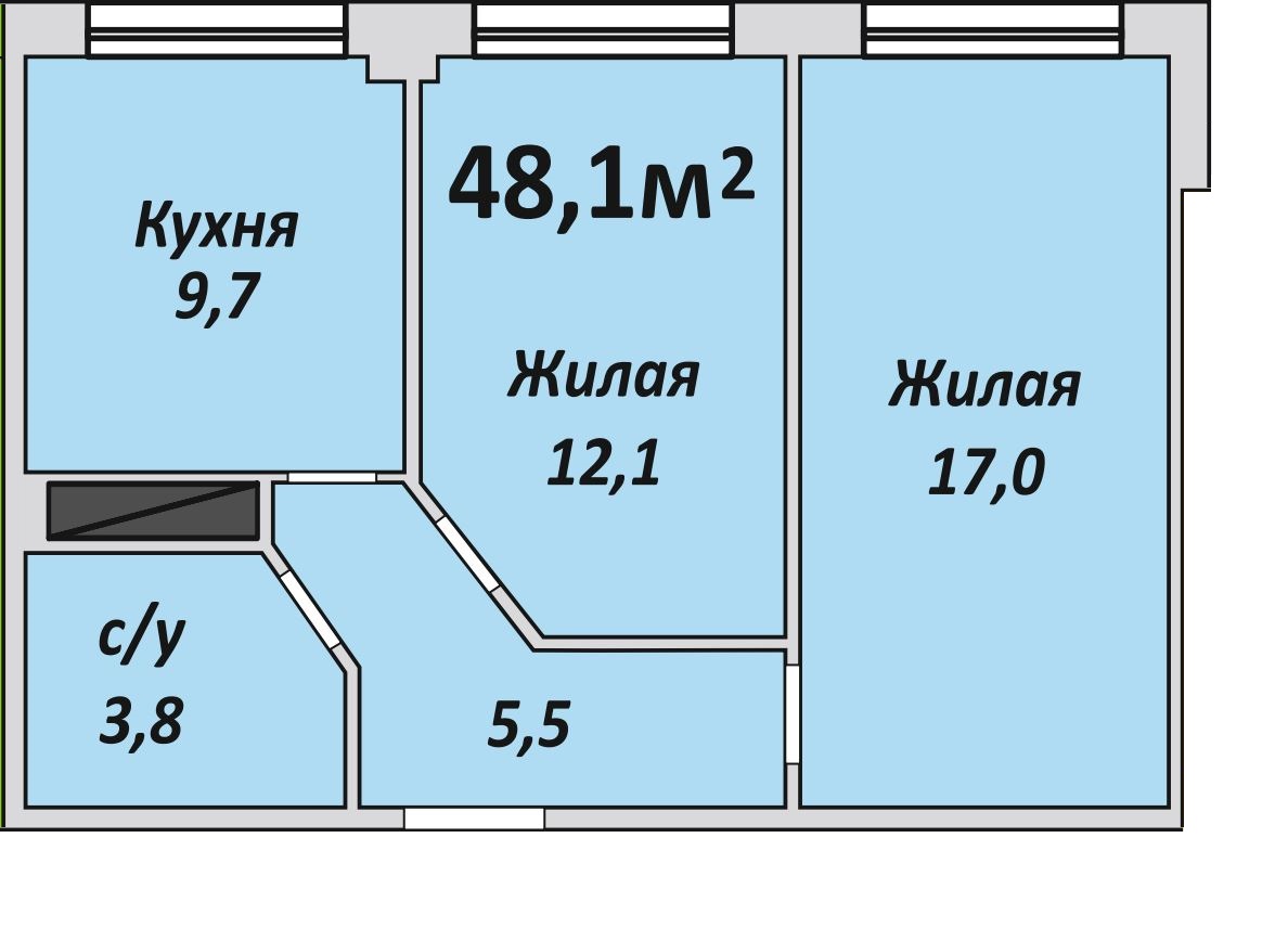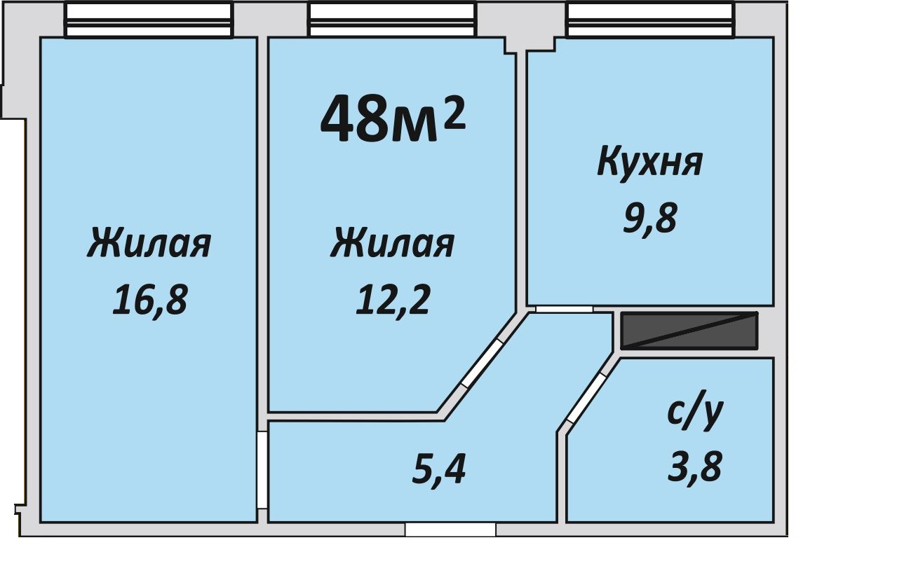 Двухкомнатная , №82 , 48 м2