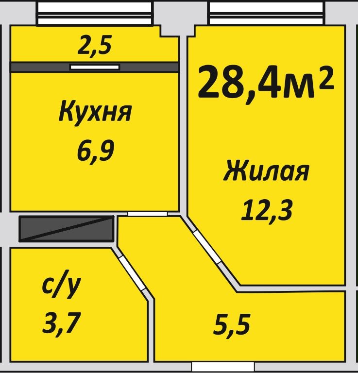 Однокомнатная , №124 , 28.4 м2