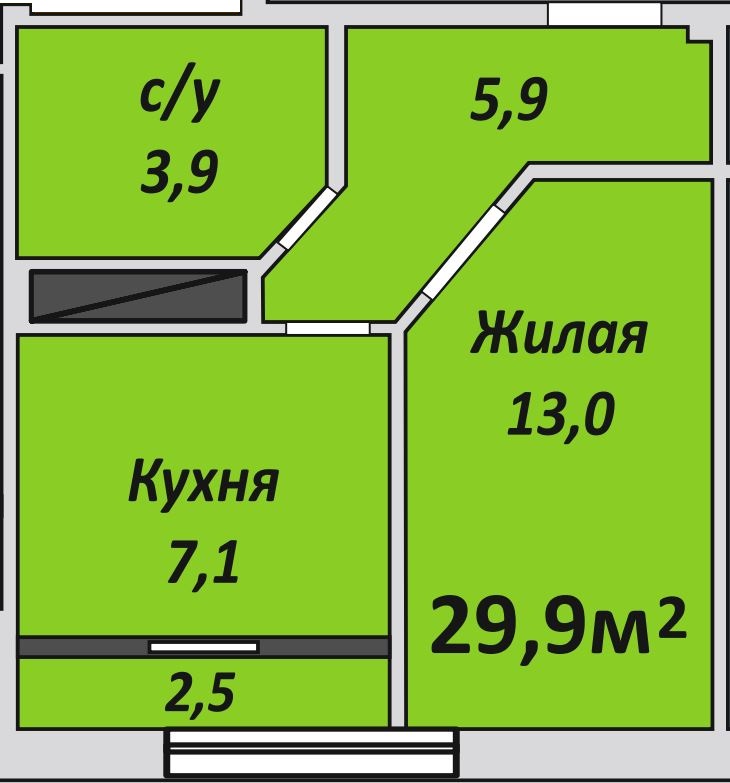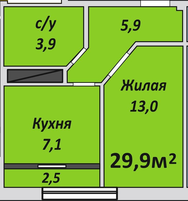 Однокомнатная , №141 , 29.9 м2