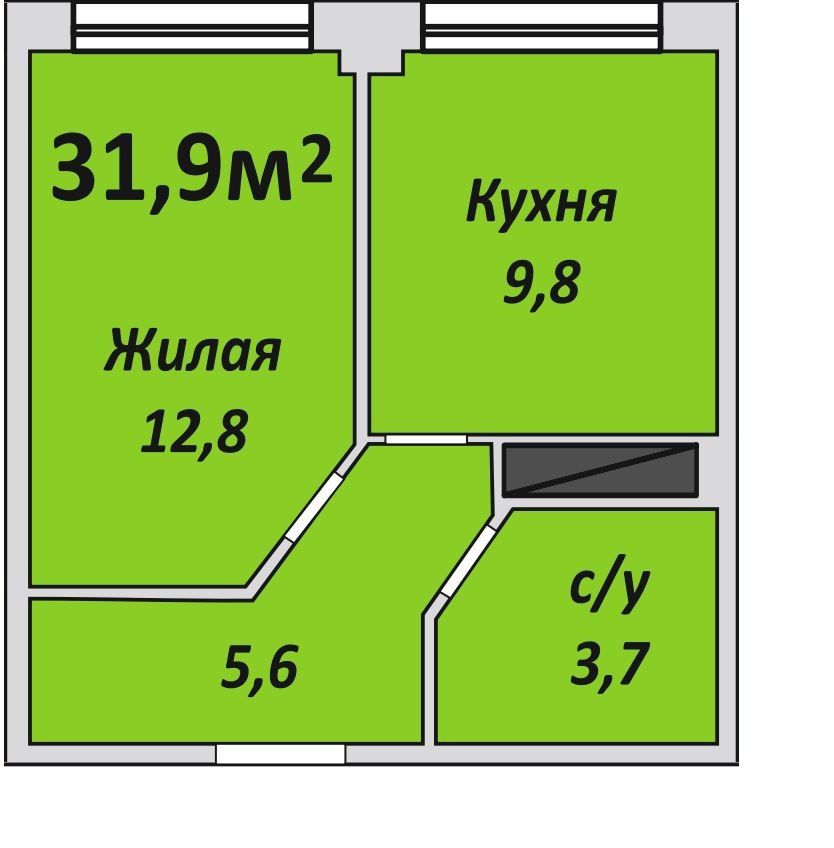 Однокомнатная , №127 , 31.8 м2