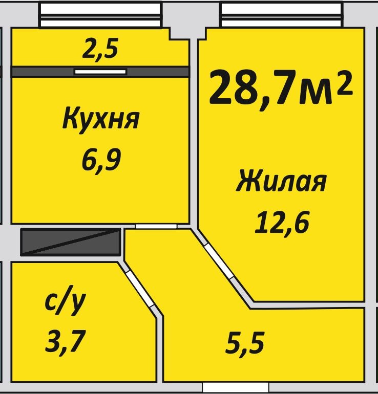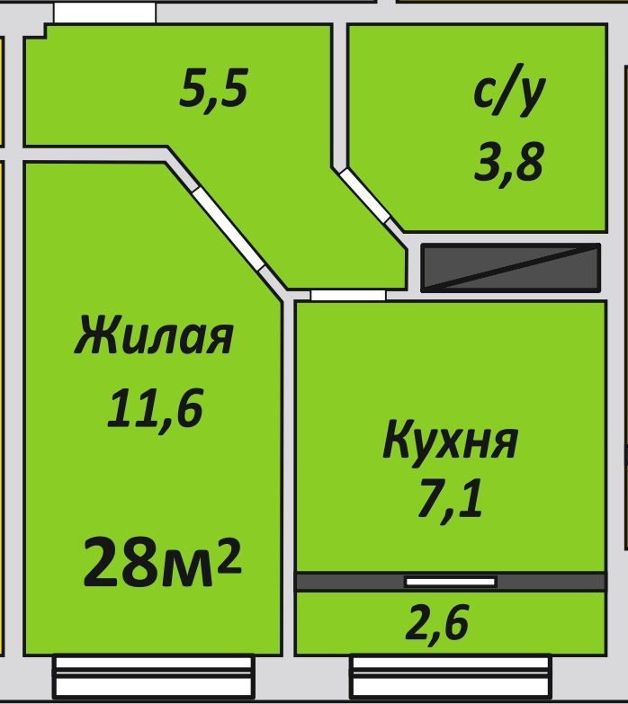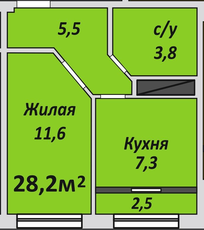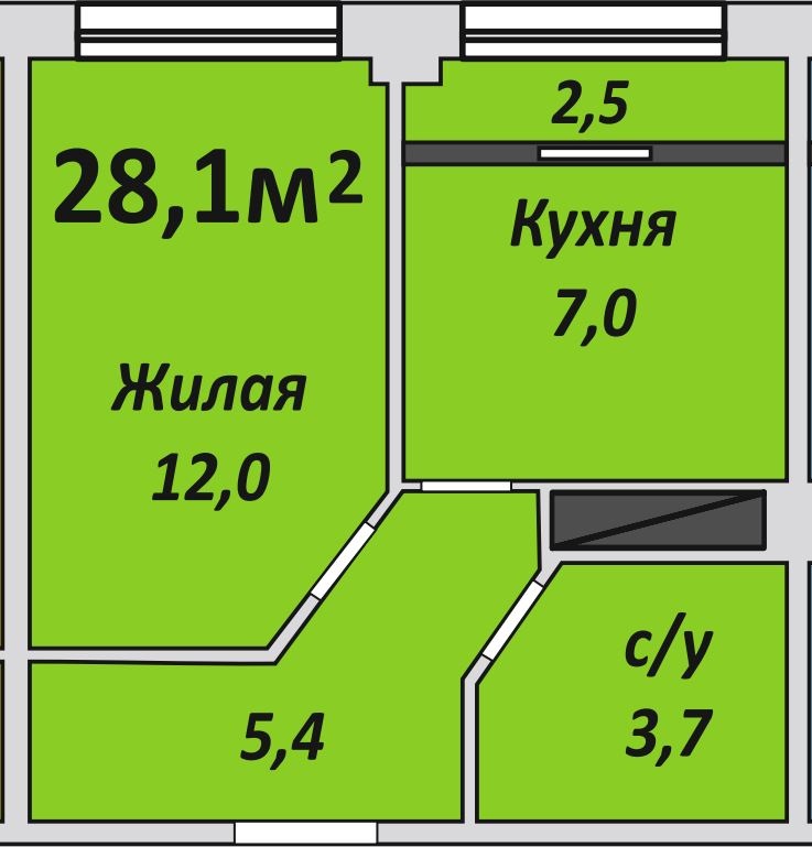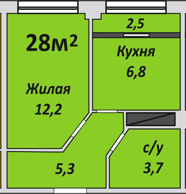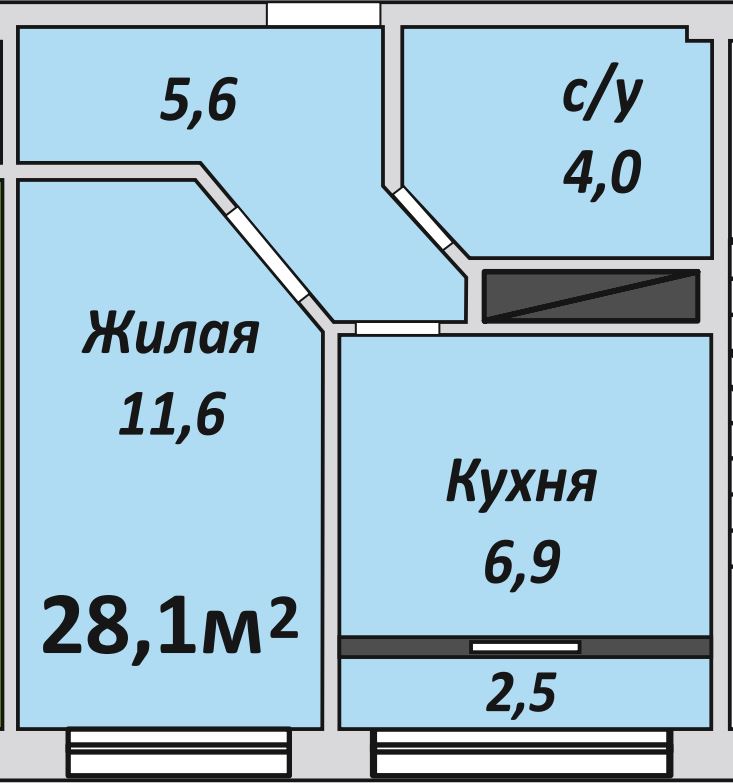 Однокомнатная , №125 , 28.2 м2