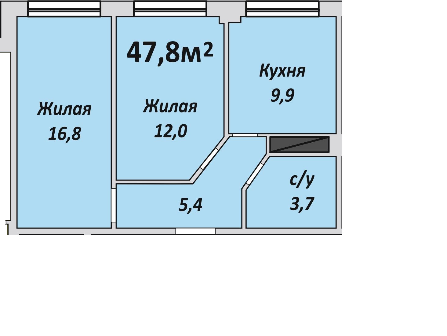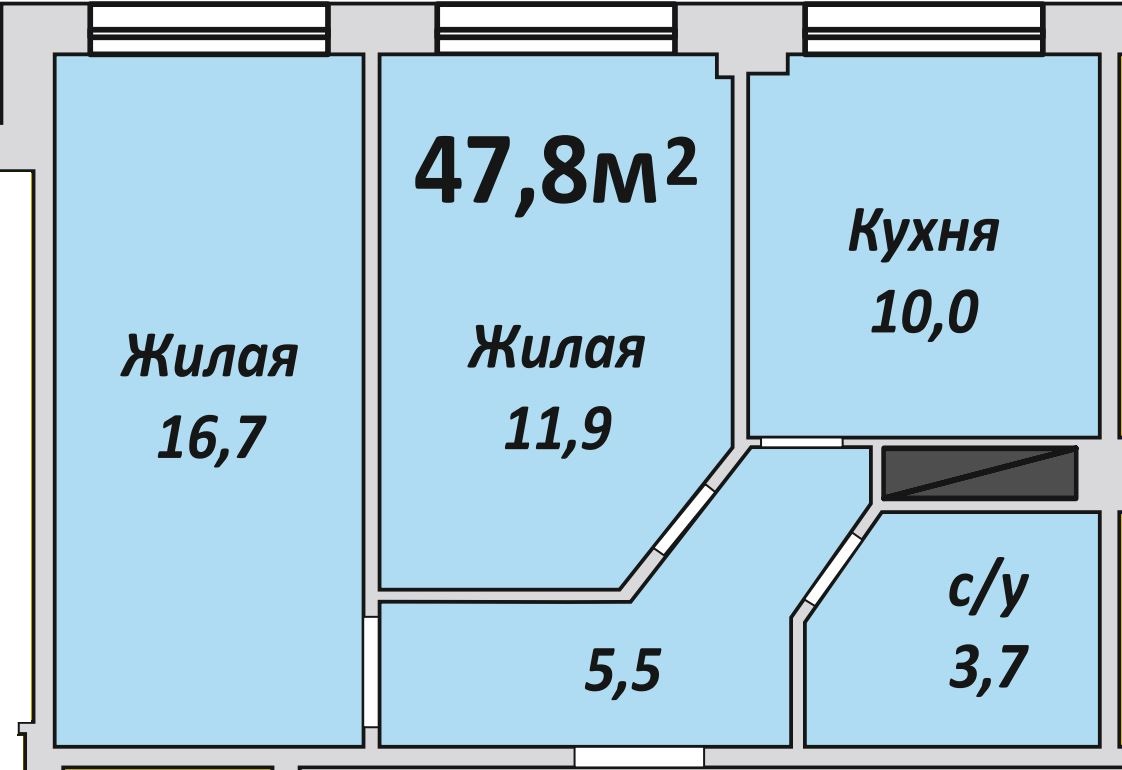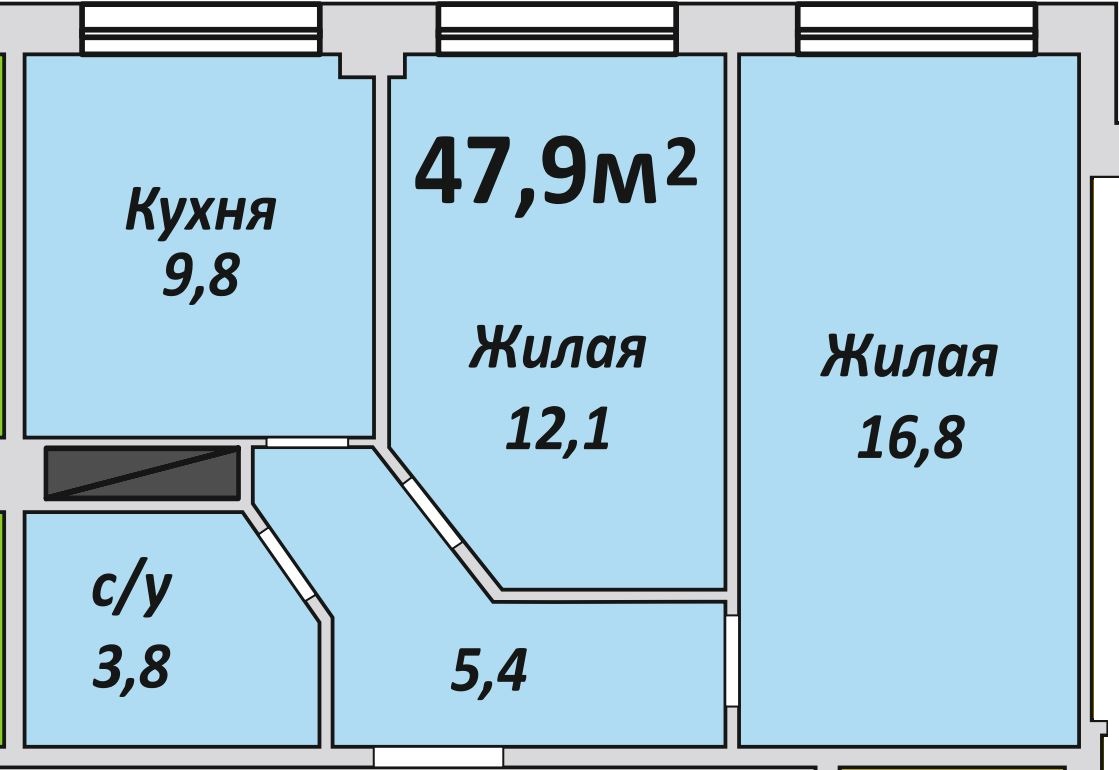Двухкомнатная , №116 , 47.9 м2