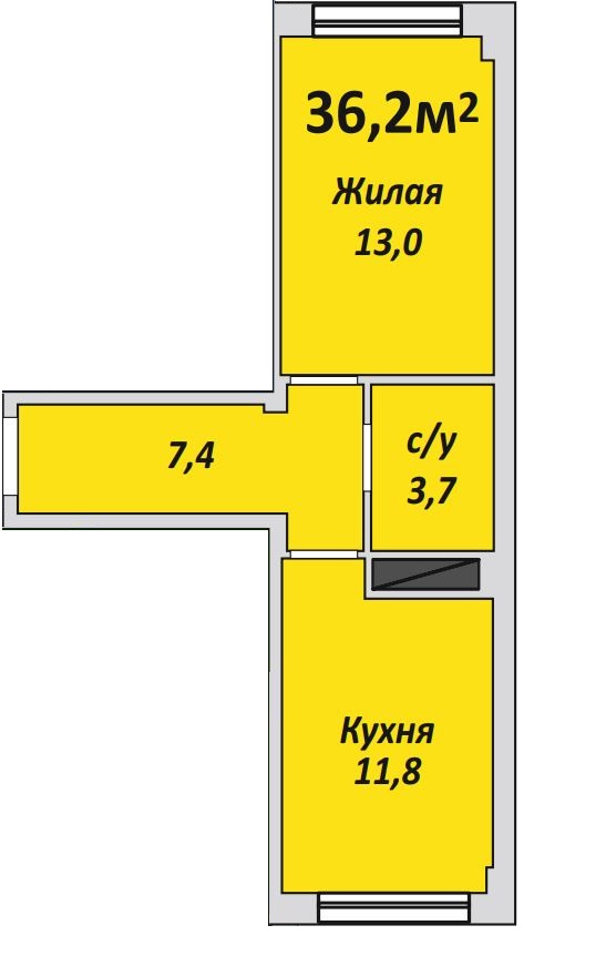 Однокомнатная , №88 , 36.2 м2