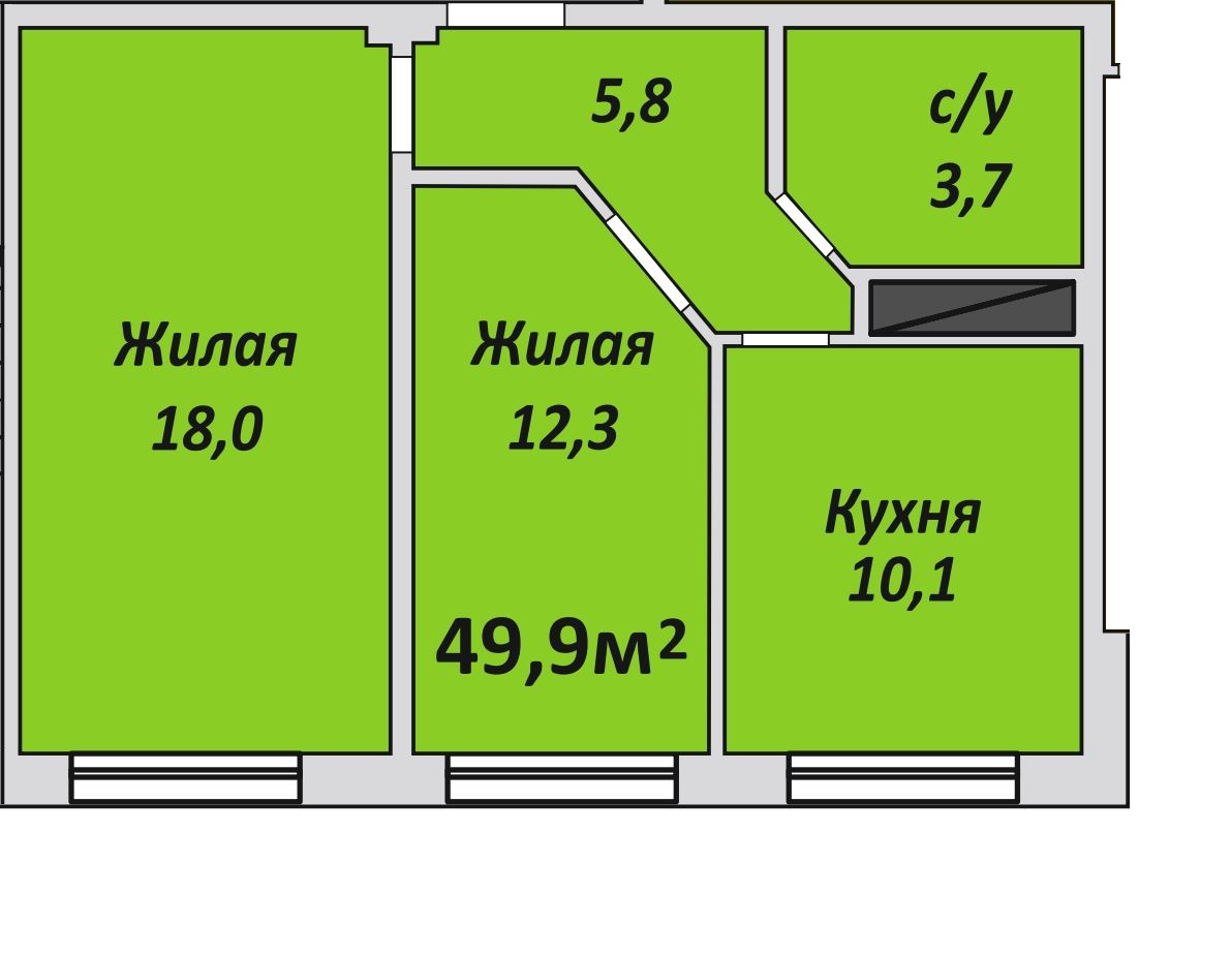 Двухкомнатная , №89 , 49.9 м2