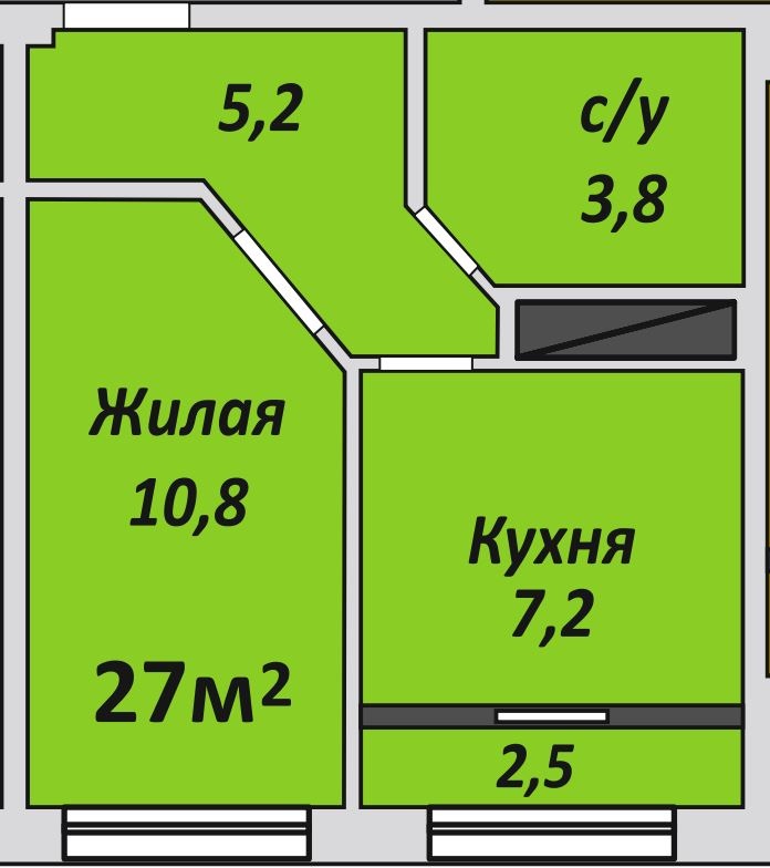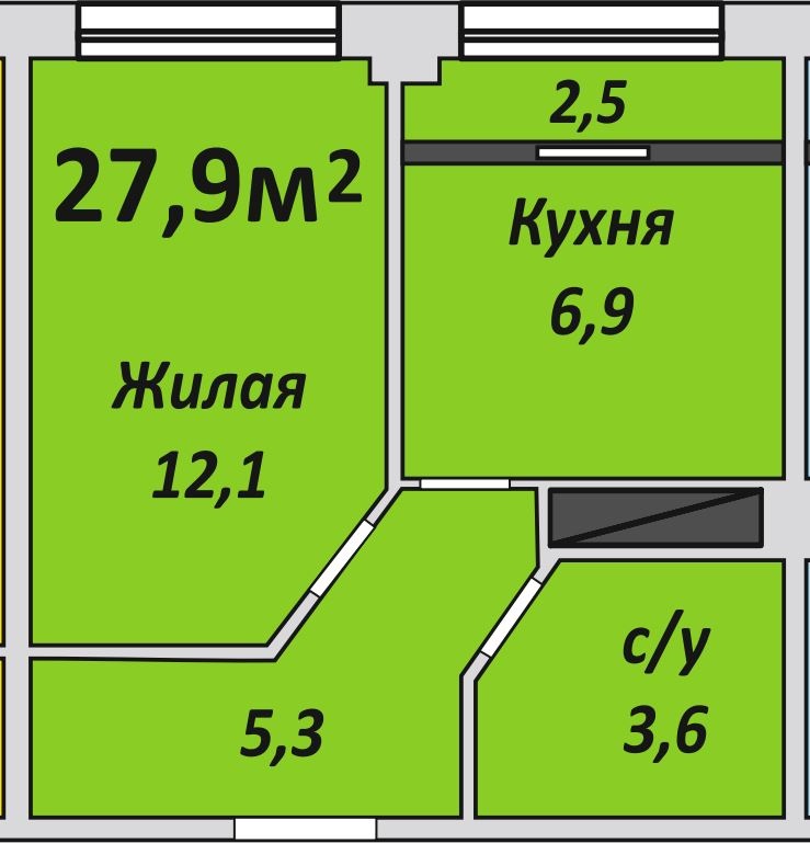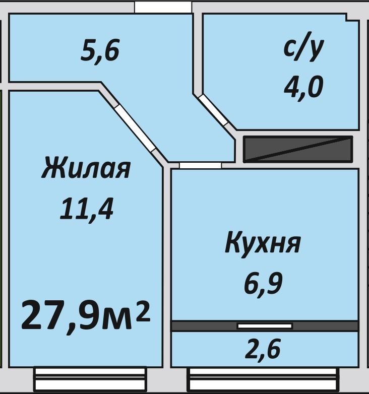 Однокомнатная , №120 , 27.9 м2