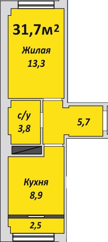 Однокомнатная , №122 , 31.7 м2