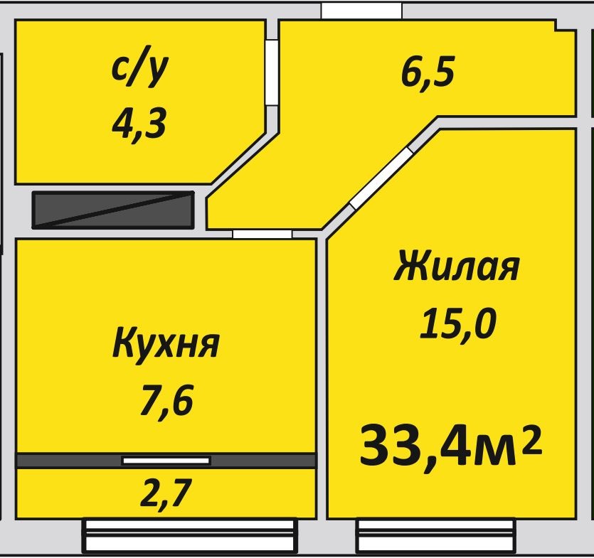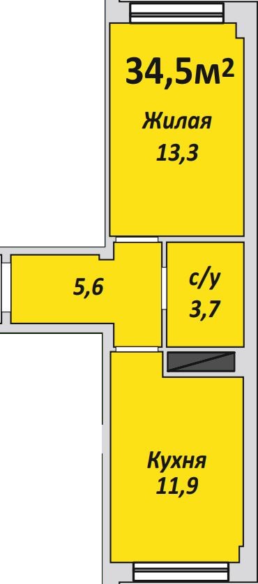 Однокомнатная , №117 , 34.5 м2