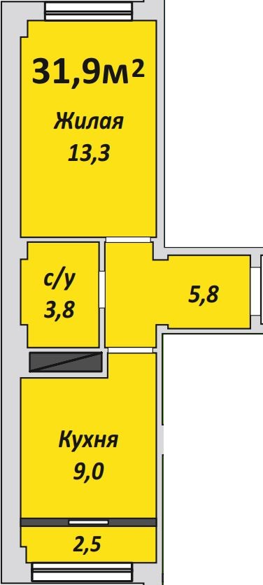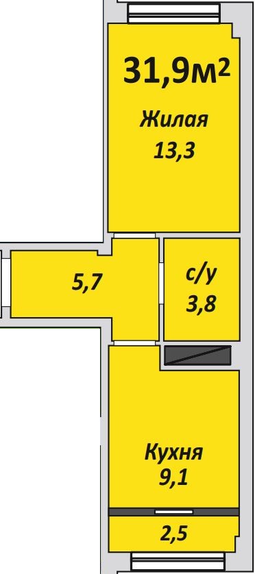 Однокомнатная , №95 , 31.9 м2