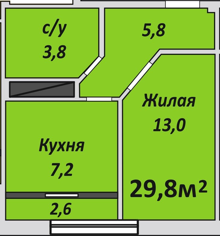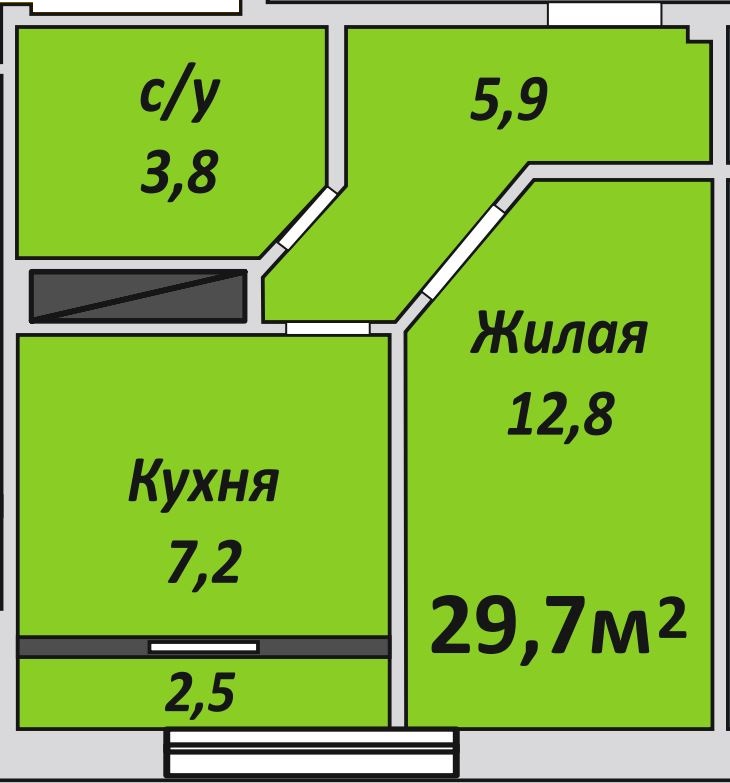 Однокомнатная , №98 , 29.7 м2