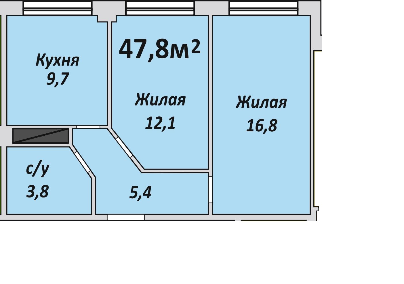 Двухкомнатная , №103 , 47.8 м2
