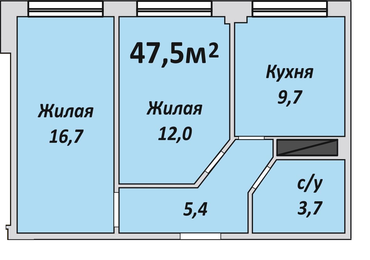 Двухкомнатная , №93 , 47.5 м2
