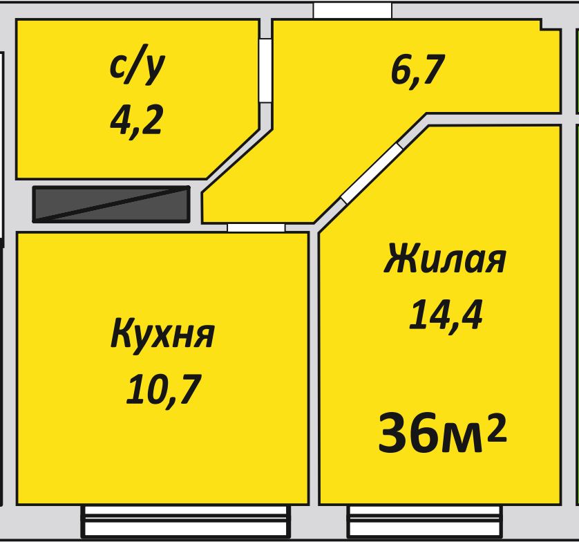 Однокомнатная , №109 , 36 м2