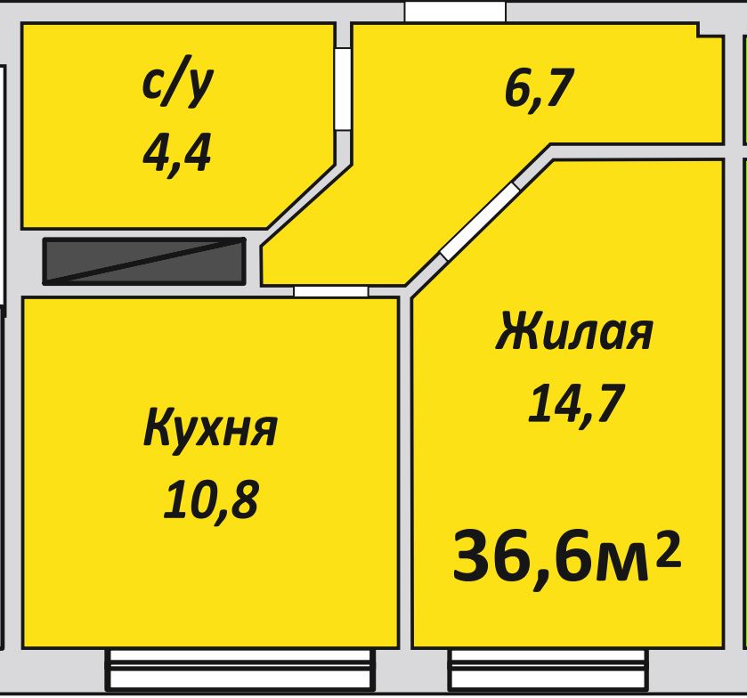 Однокомнатная , №119 , 36.6 м2