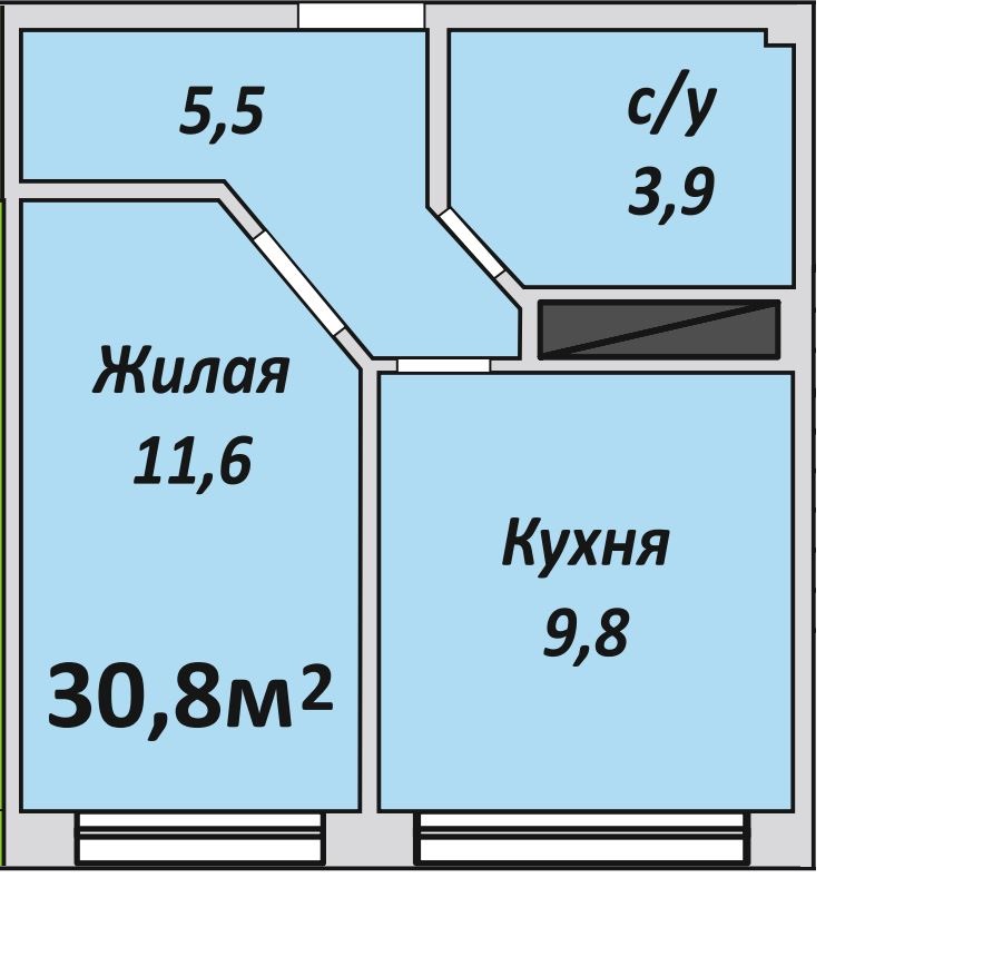 Однокомнатная , №90 , 30.8 м2