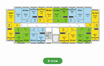 Двухкомнатная , №156 , 45 м2